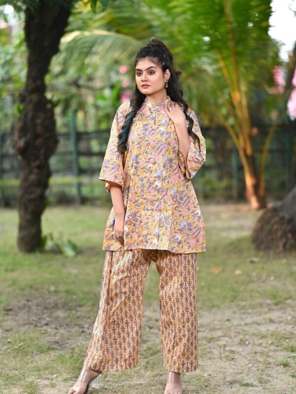 Adrika’s Yellow Pure Cotton Hand Block Co-Ord Set