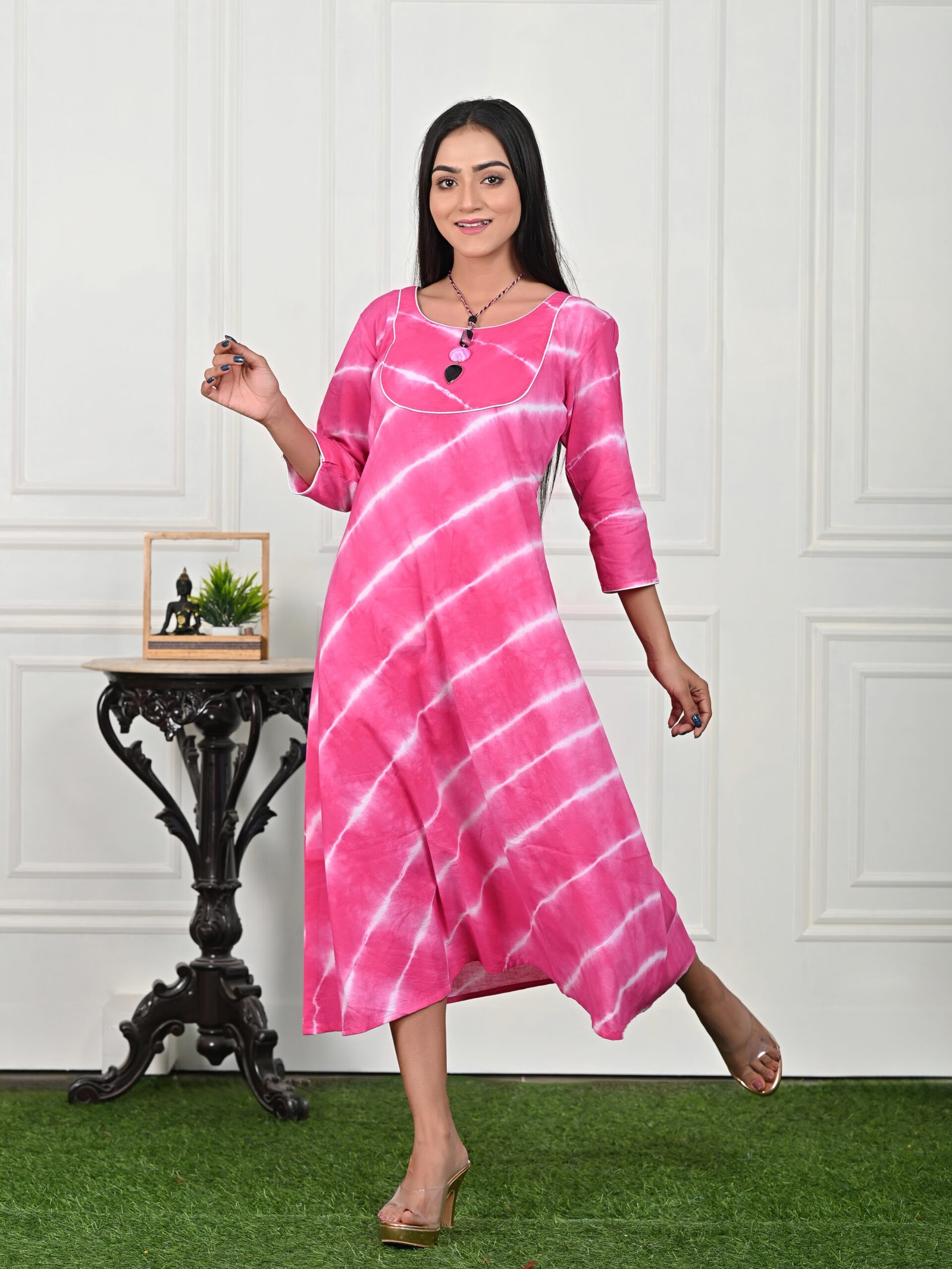 Adrika’s Pink Cotton Handblock Long Dress