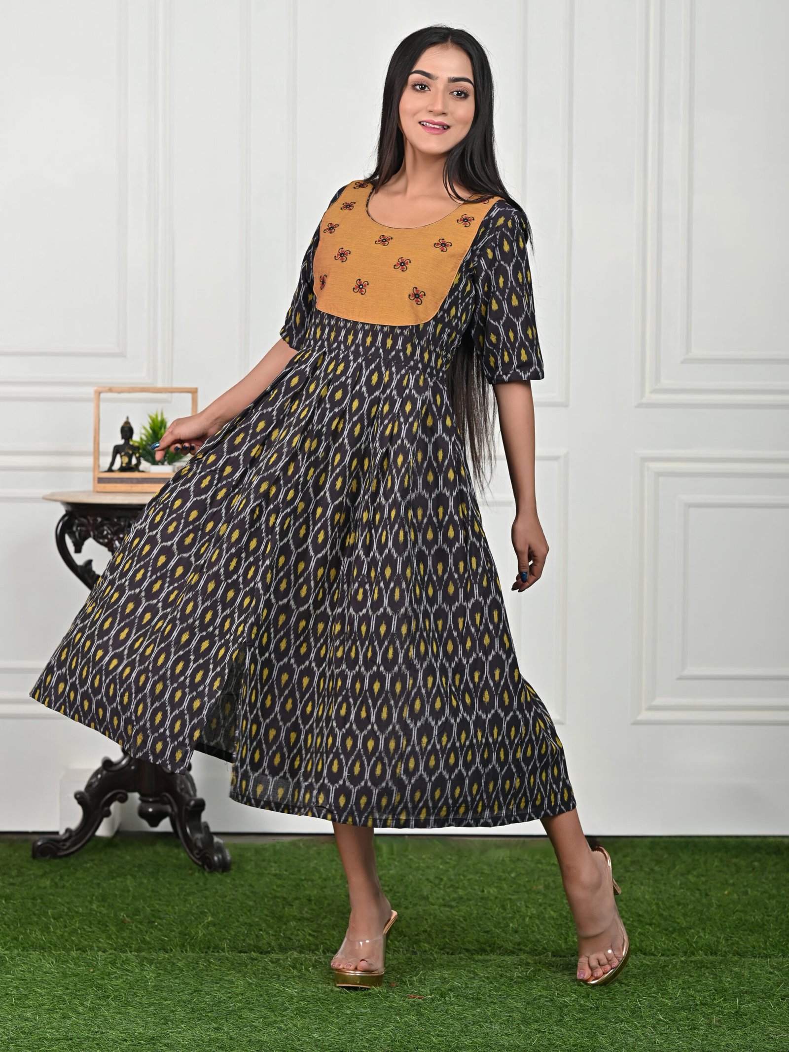 Adrika’s Black Ikkat Pure Cotton Dress