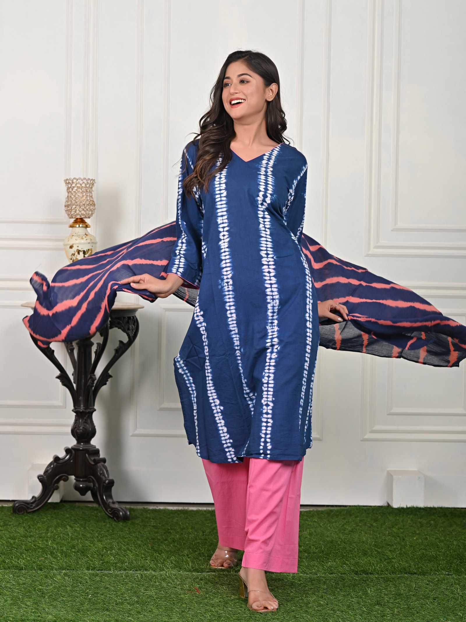 Adrika’s Blue & Pink Pure Shibori Kurti Set