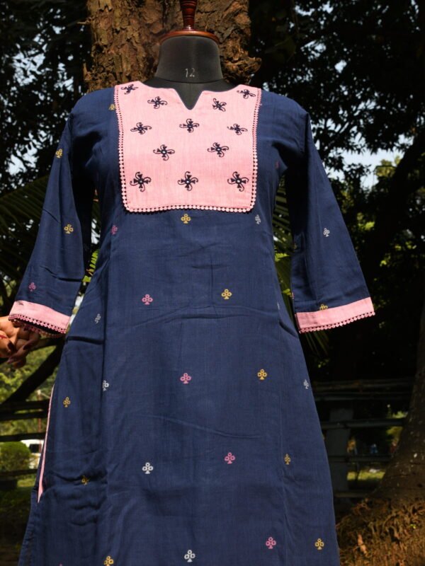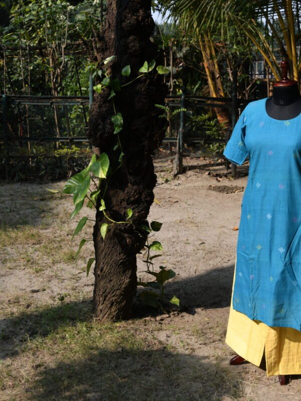 Adrika’s Blue Handloom Cotton Jamdani Hand Embroidered Kurti Set