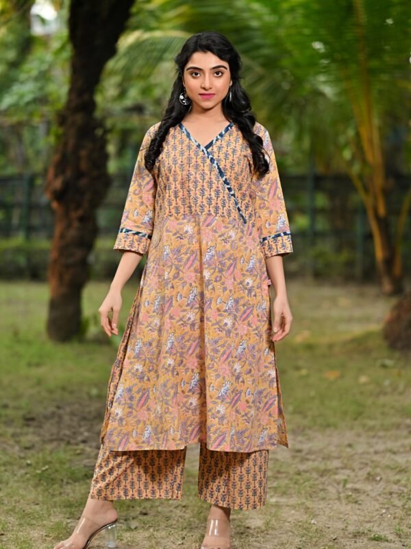 Adrika’s Mustard Yellow Pure Cotton Hand Block 2 Pc Kurti Set