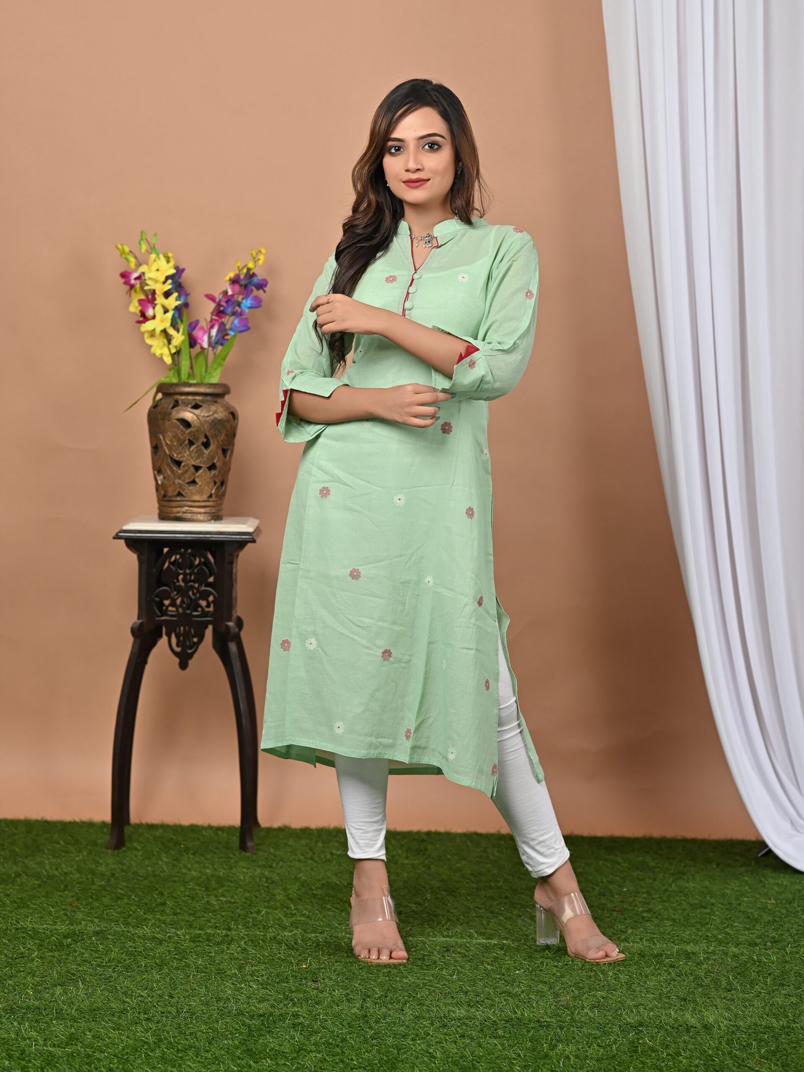 Adrika’s Light Green Handloom Cotton Jamdani Kurti