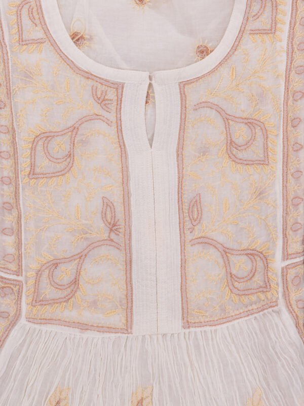• Adrika’s Lucknow Chikankari Off White Chanderi Cotton Semi-stitched 2-Piece Kurti Set