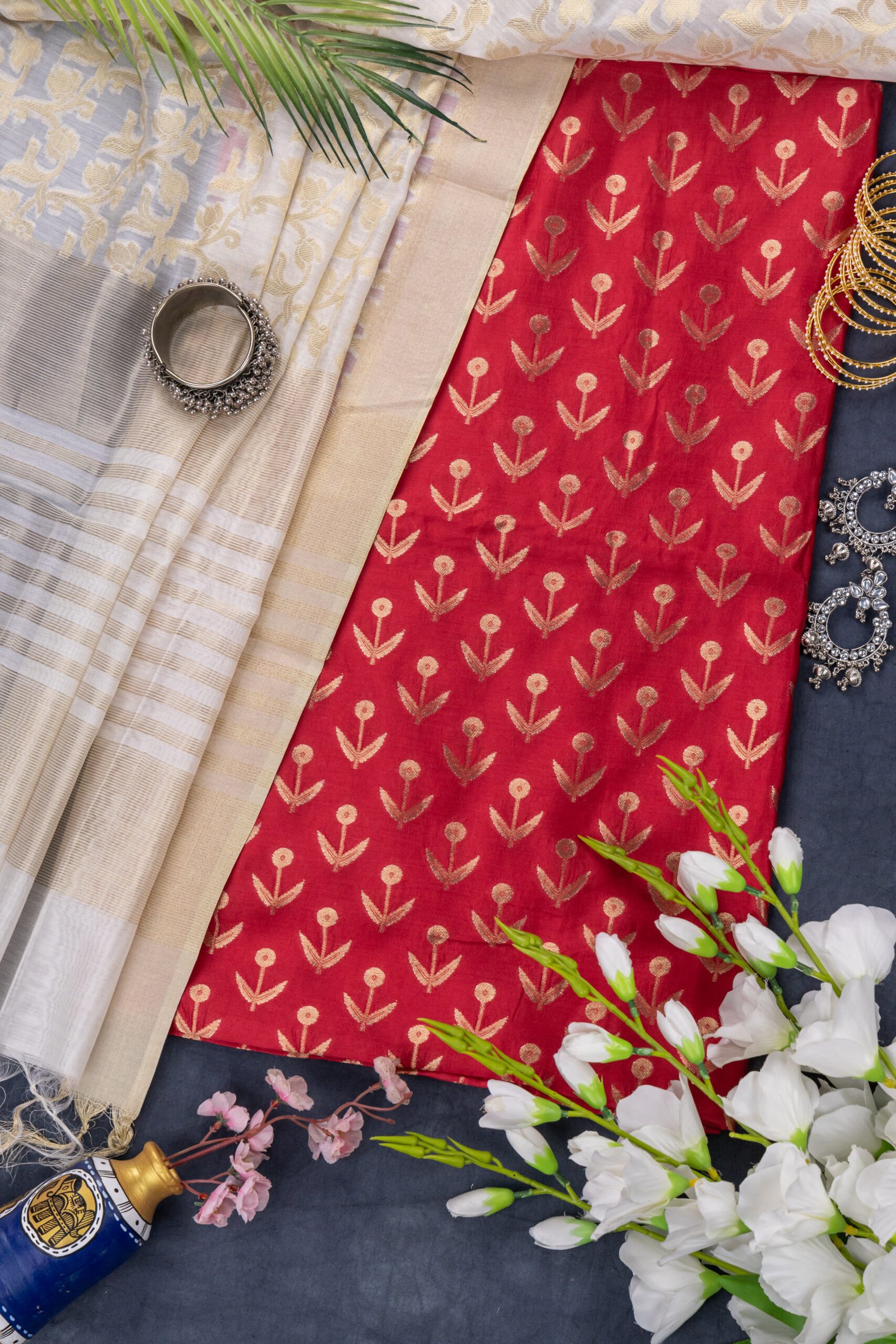 This Banarasi unstitched 2 pc kurta set offers a comfortable & relaxed silhouette to the wearer,the fabric & zari is skin friendly.