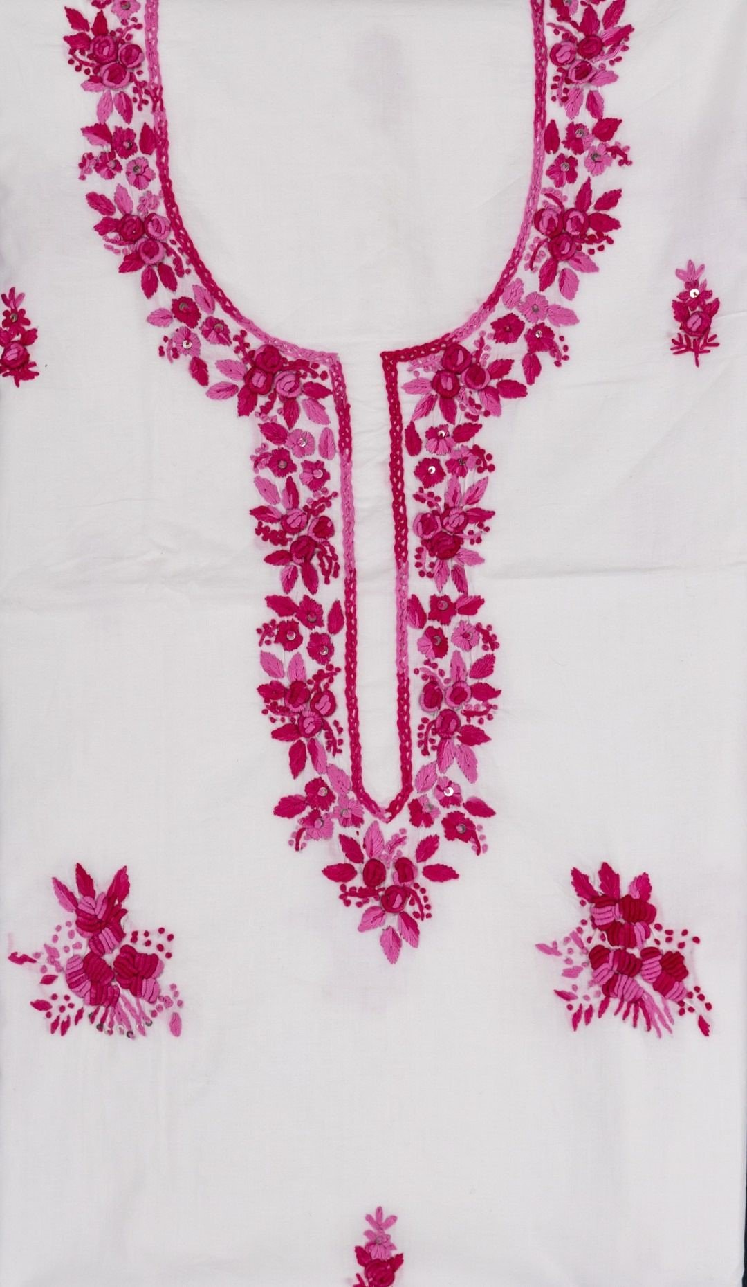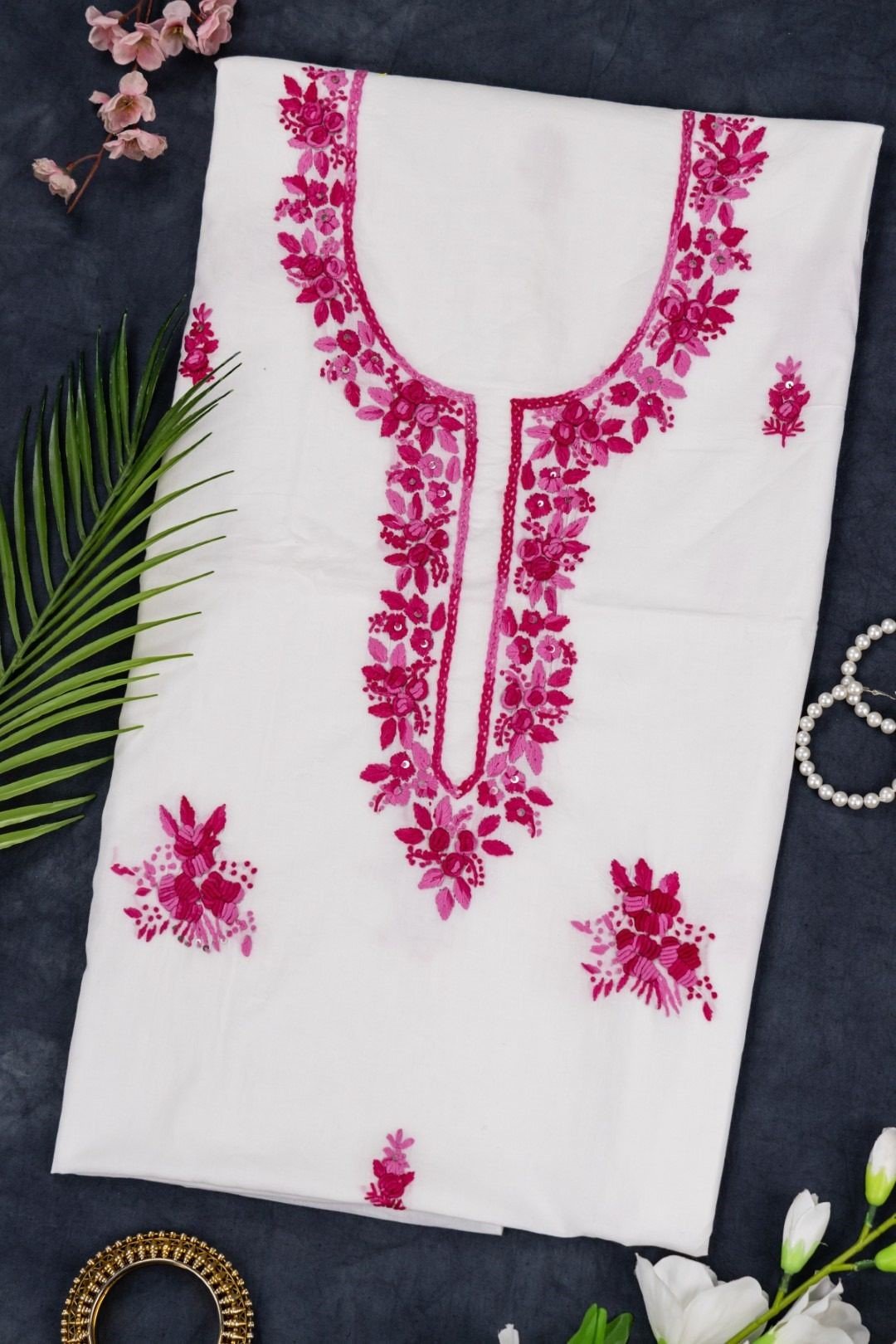 This white cotton hand embroidered unstitched kurta offers a comfortable & relaxed silhouette to the wearer,the fabric & embroidery is skin friendly.