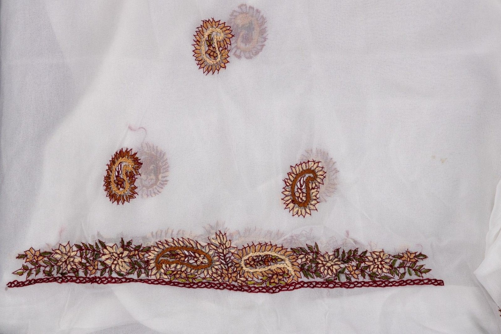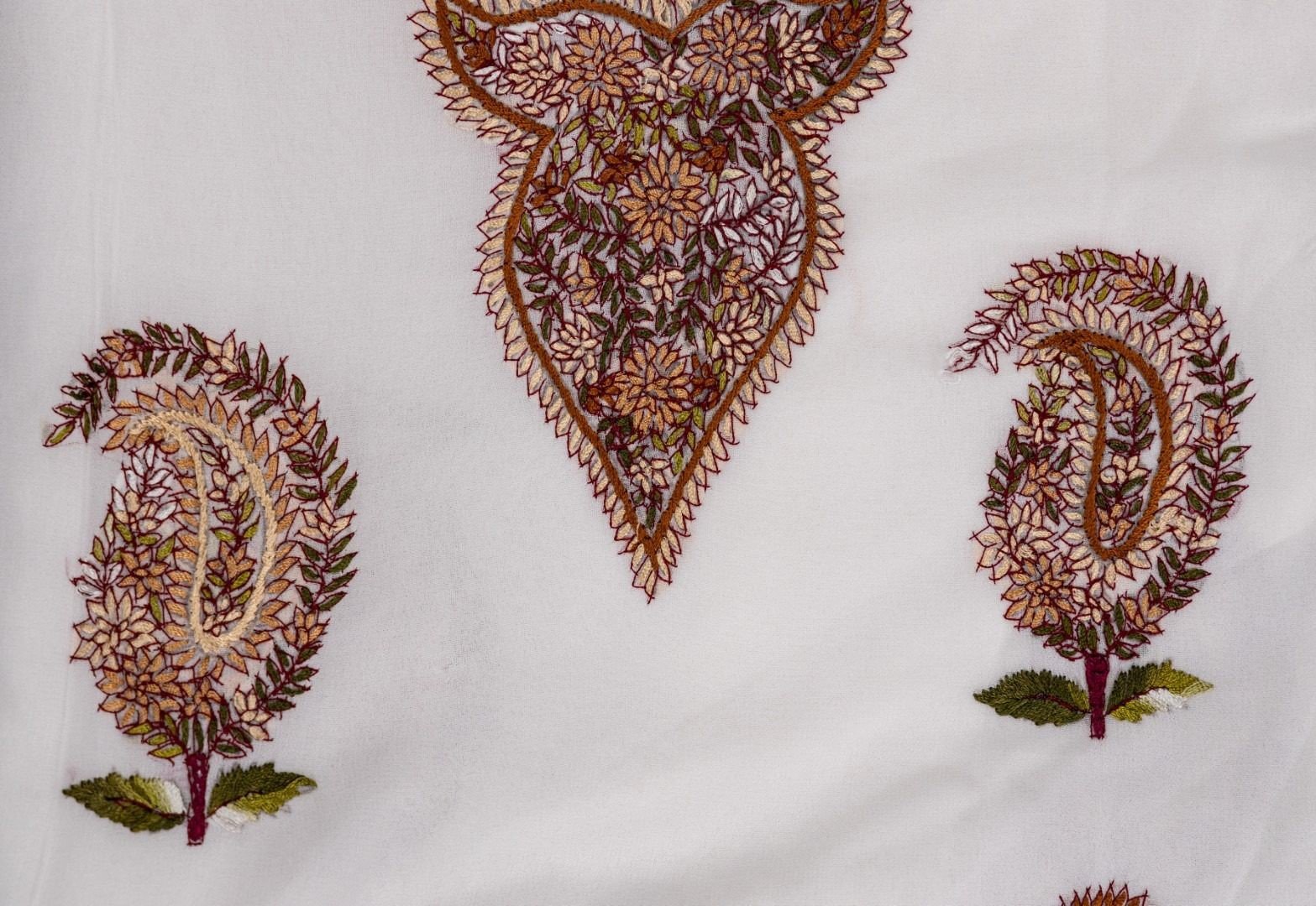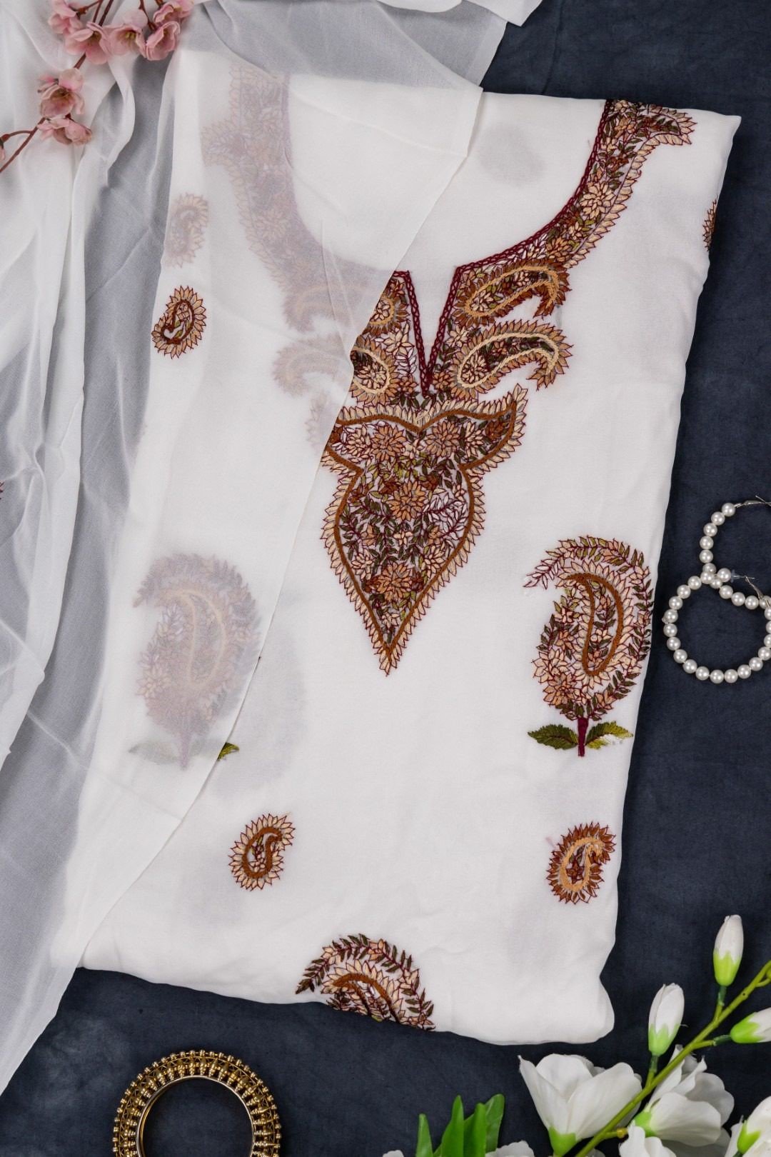 This white georgette hand embroidered unstitched kurta & dupatta offers a comfortable & relaxed silhouette to the wearer, the fabric & embroidery is skin friendly.