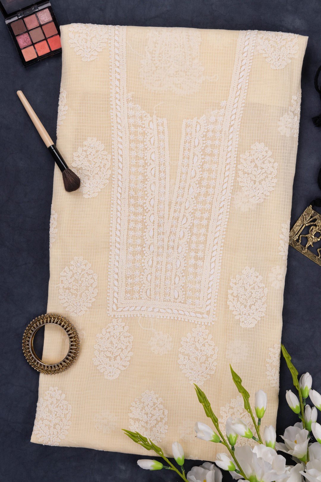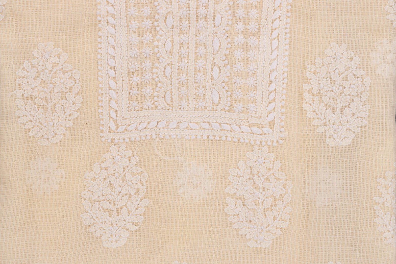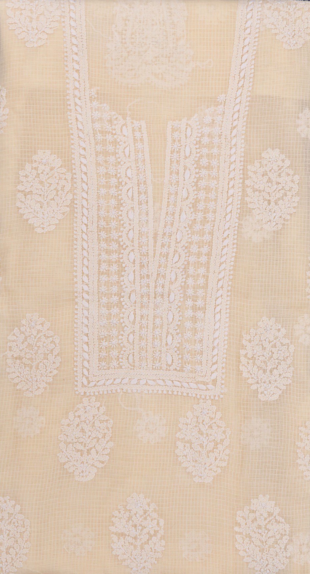 Adrika Lucknow Chikankari Light Biscuit Cotton Kota Hand Embroidered Unstitched Kurta
