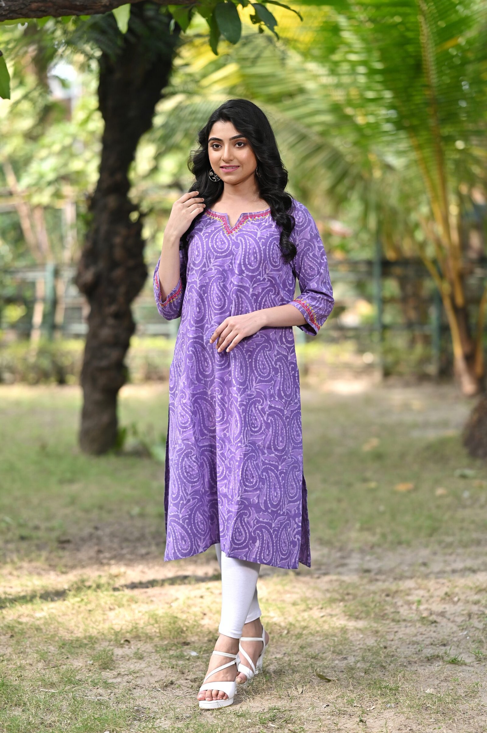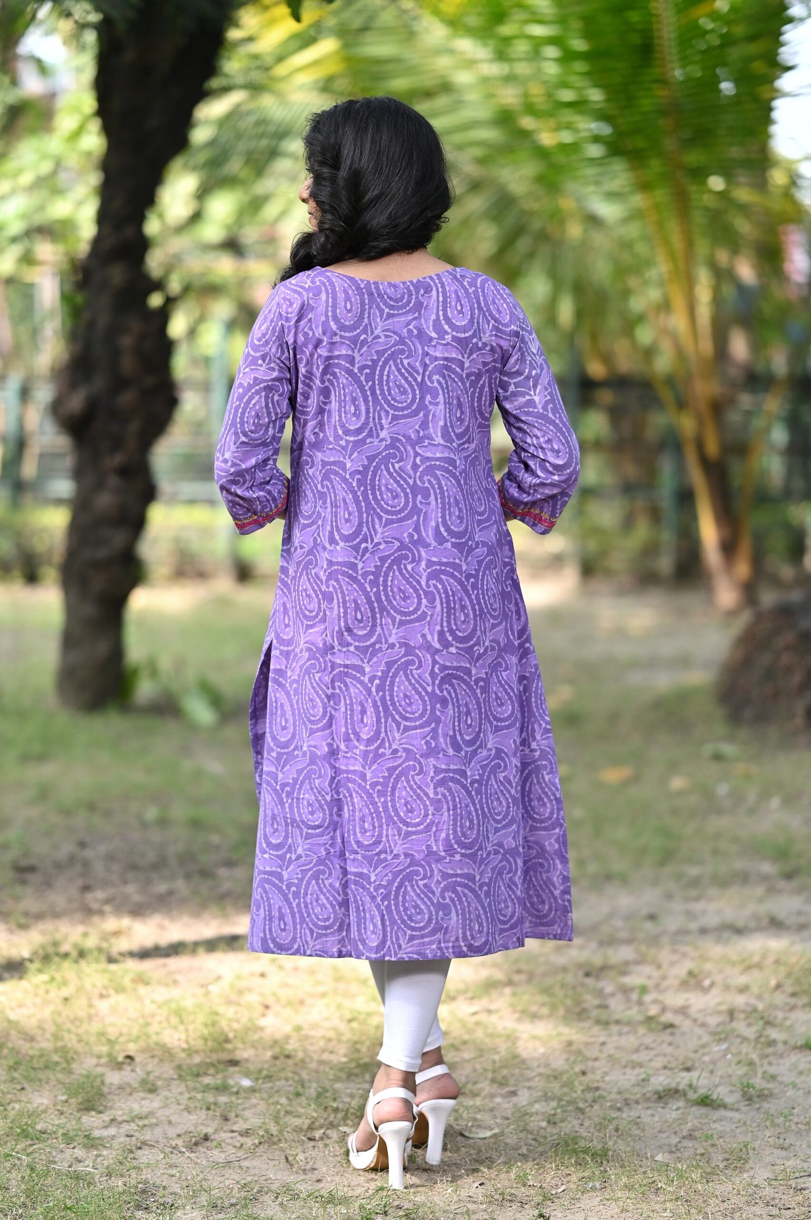 Adrika’s purple color pure dabu cotton hand embroidered kurti