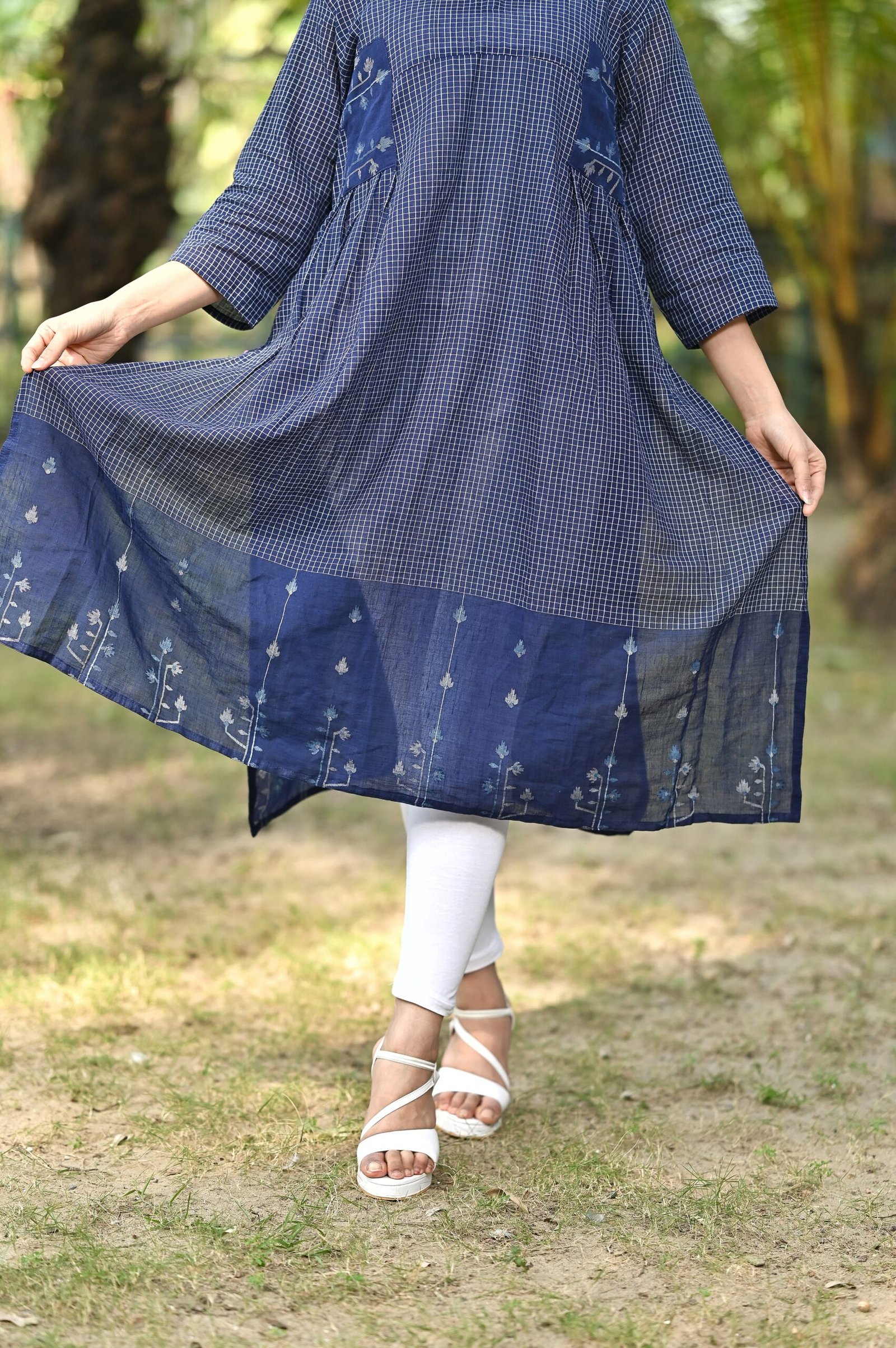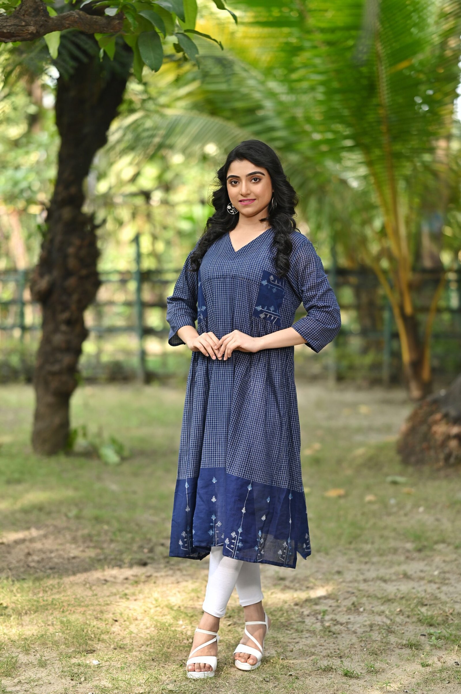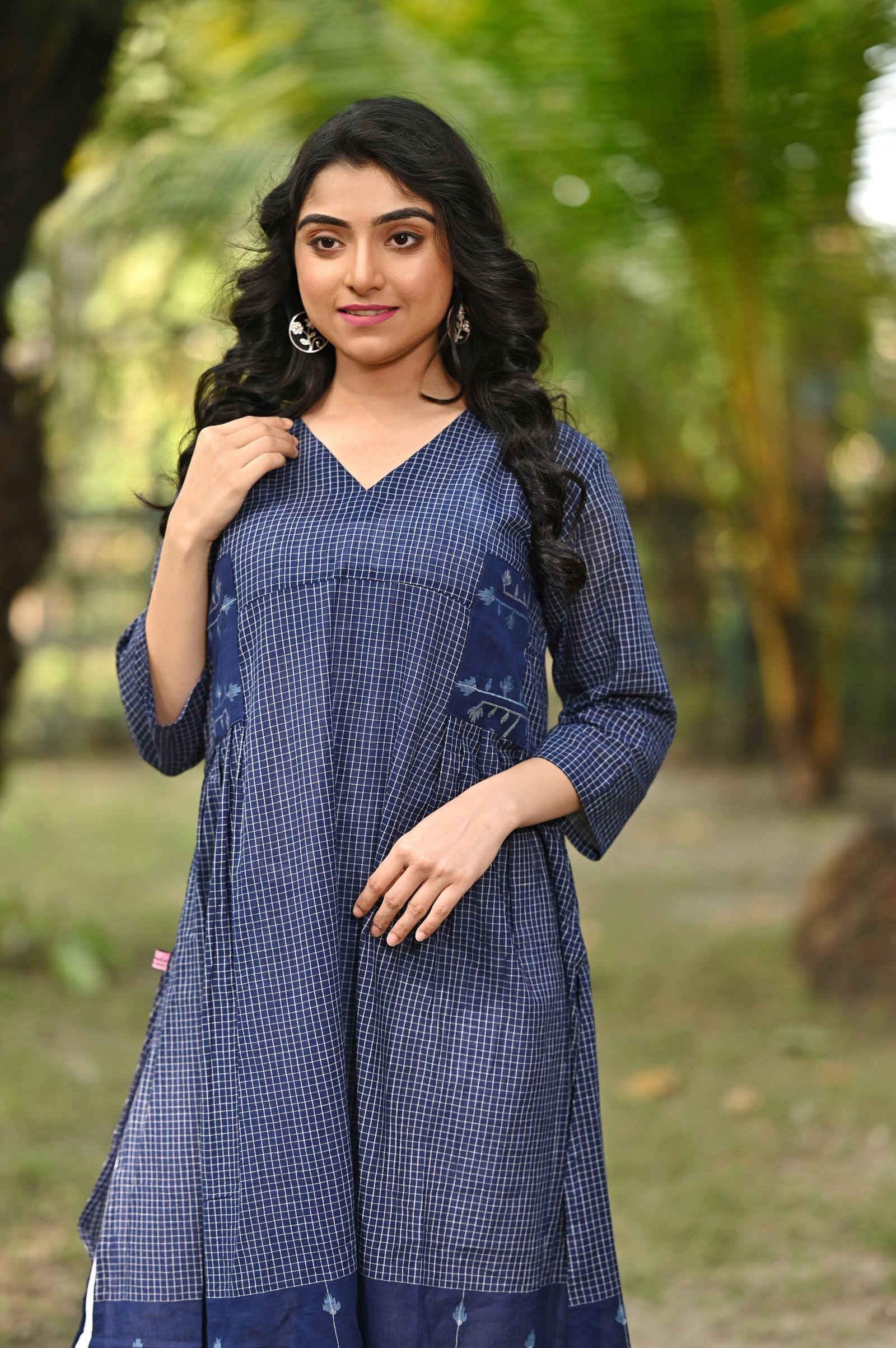 Adrika’s blue and white check handloom cotton jamdani kurti