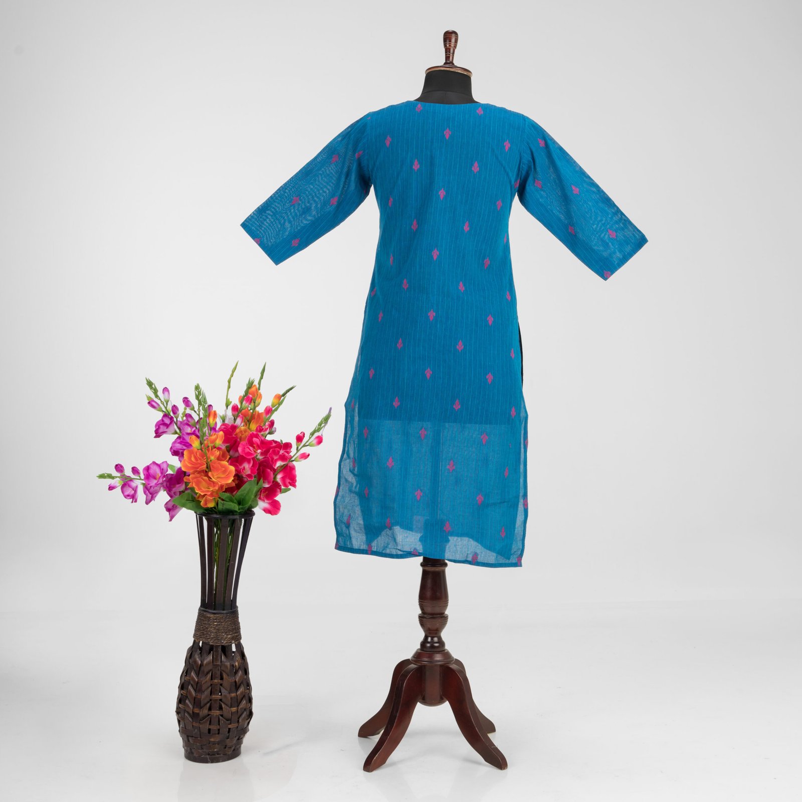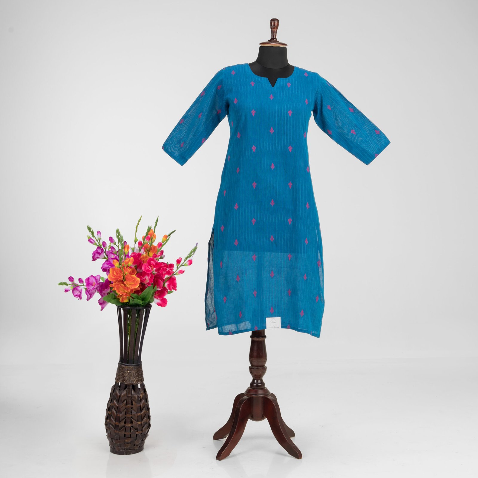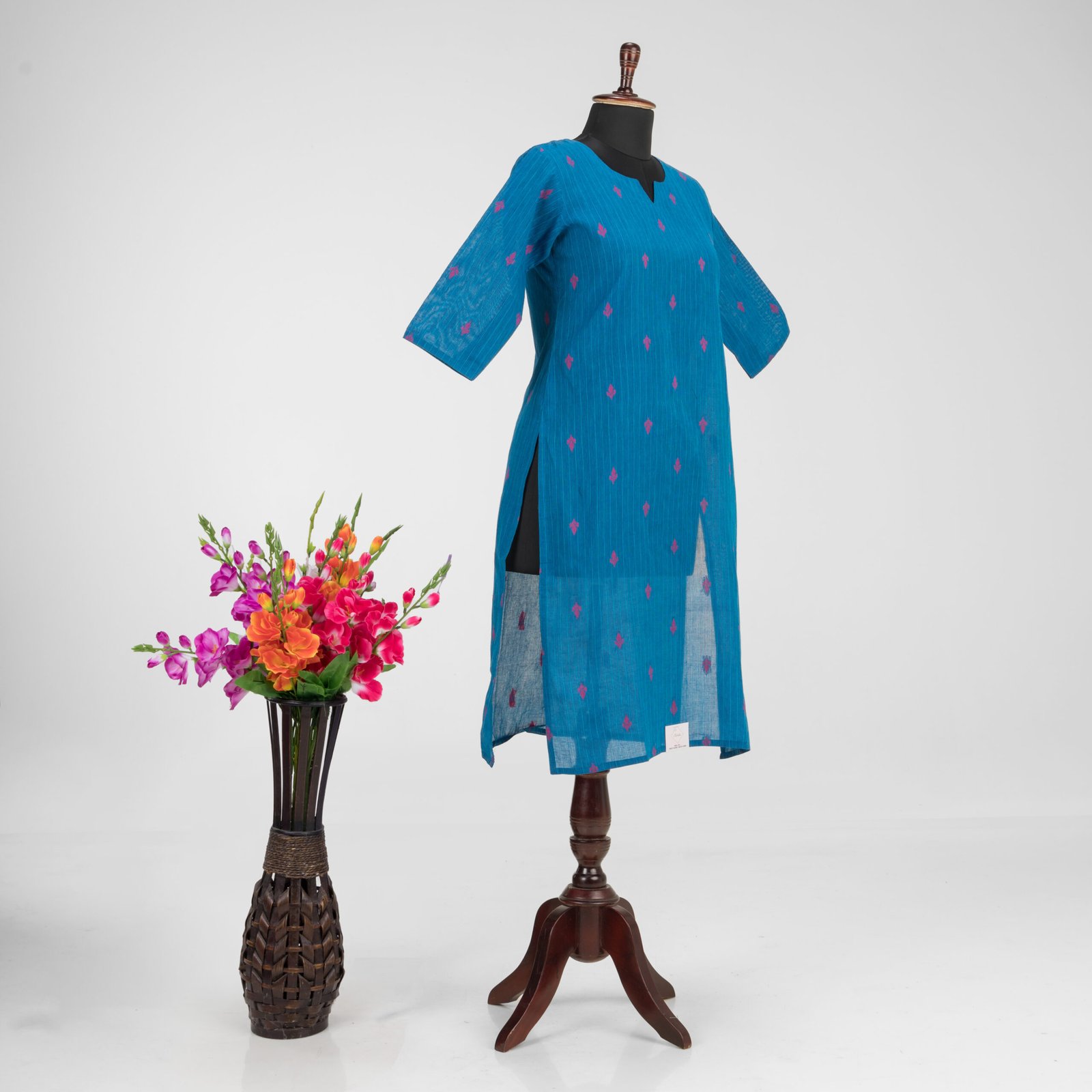 This blue pure cotton kurti offers a comfortable & relaxed silhouette to the wearer, the fabric is skin friendly.
