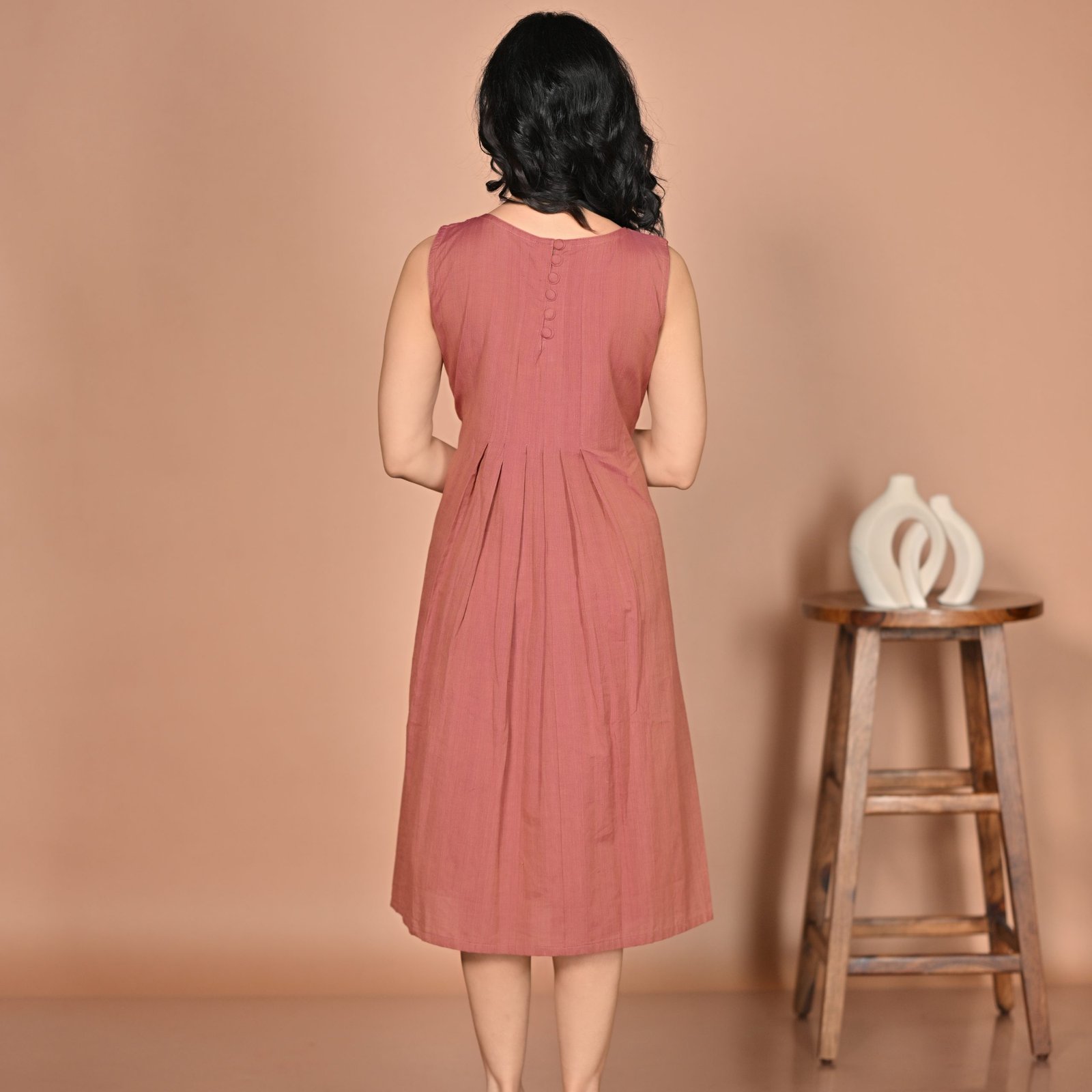 This brown color pure cotton dress offers a comfortable & relaxed silhouette to the wearer, the fabric is skin friendly.