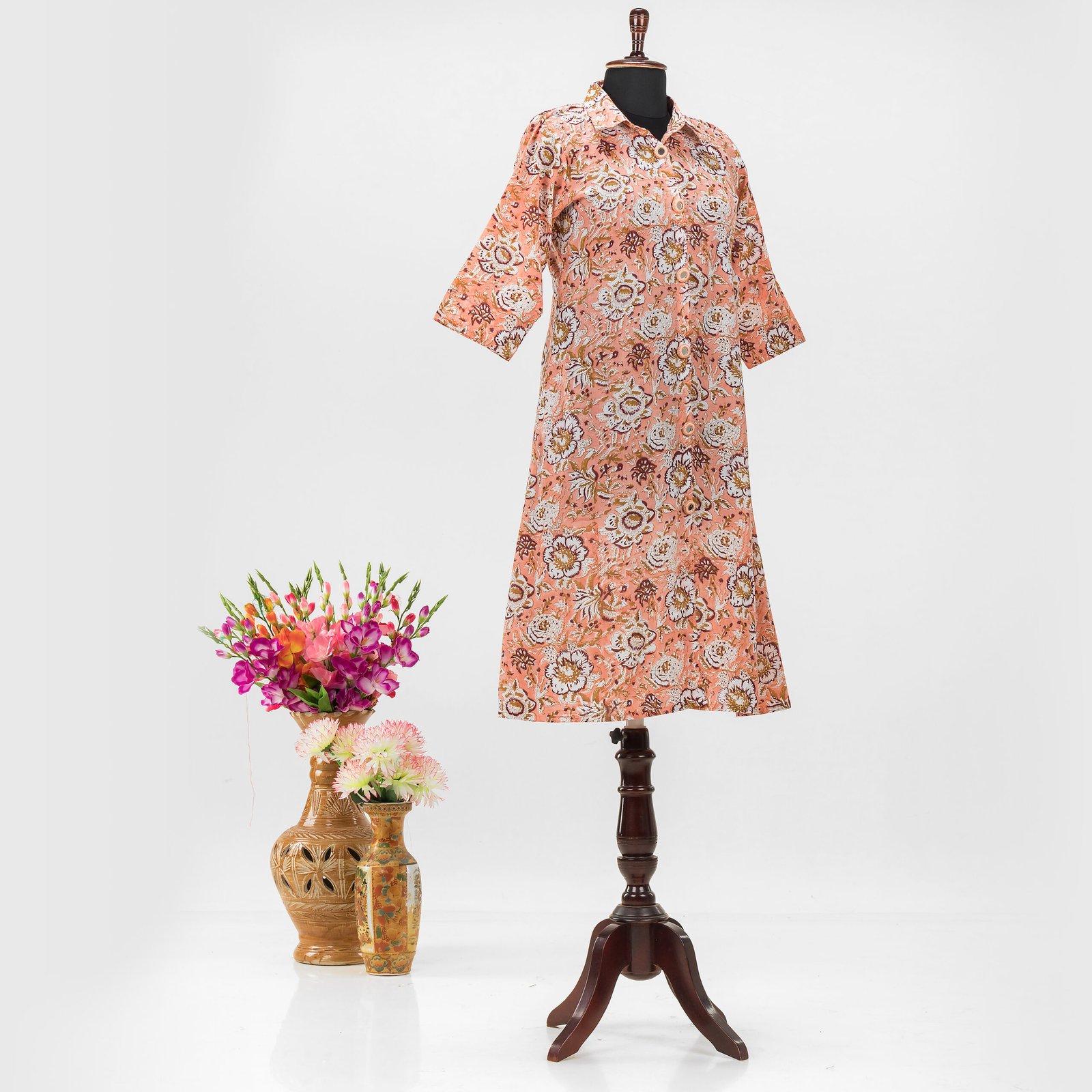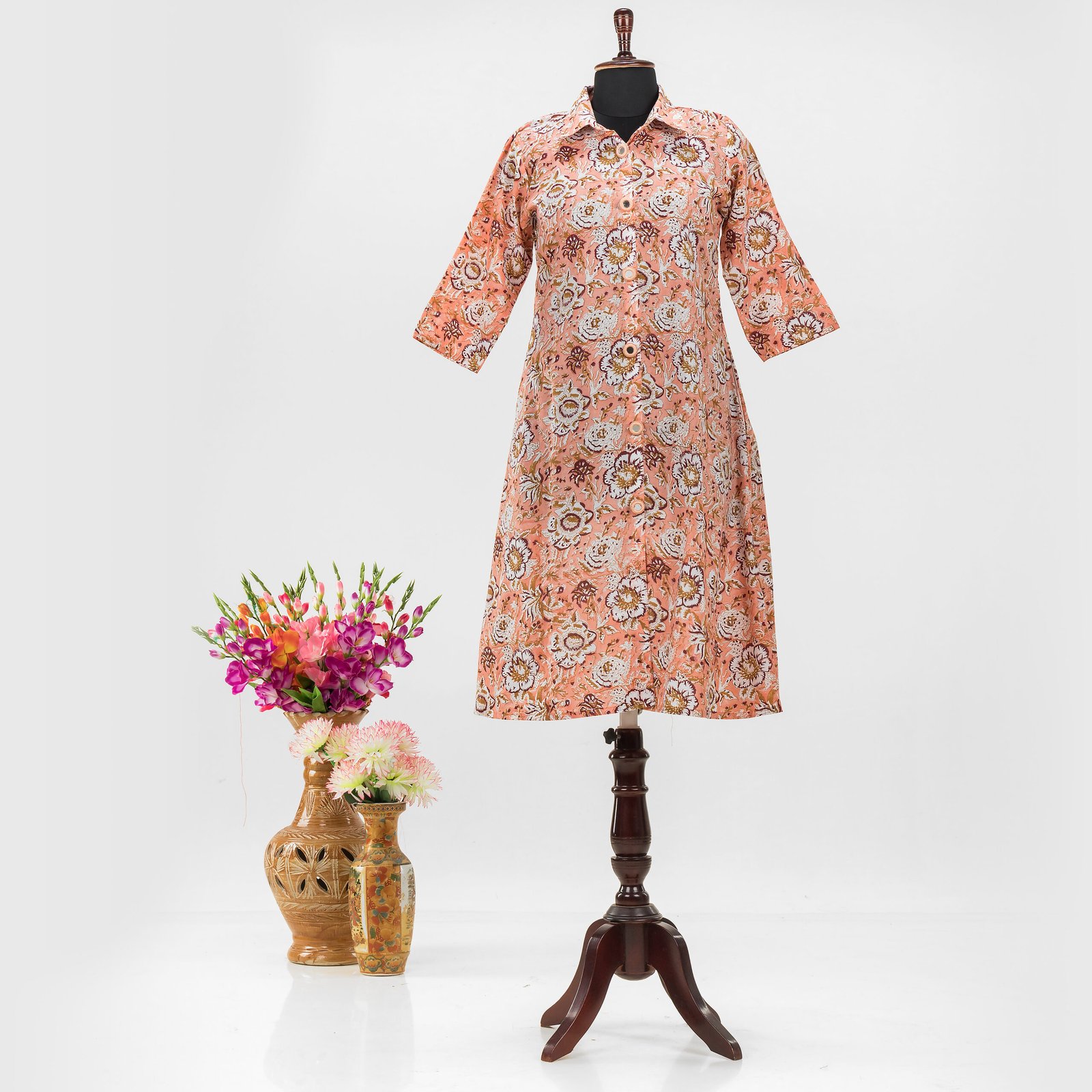 Adrika’s Peach Cotton Hand block  Kurti