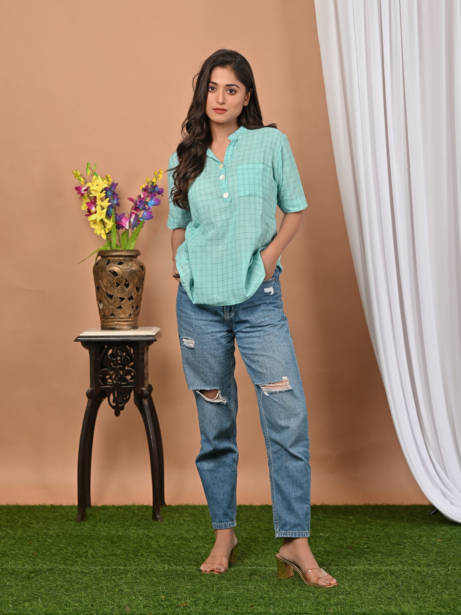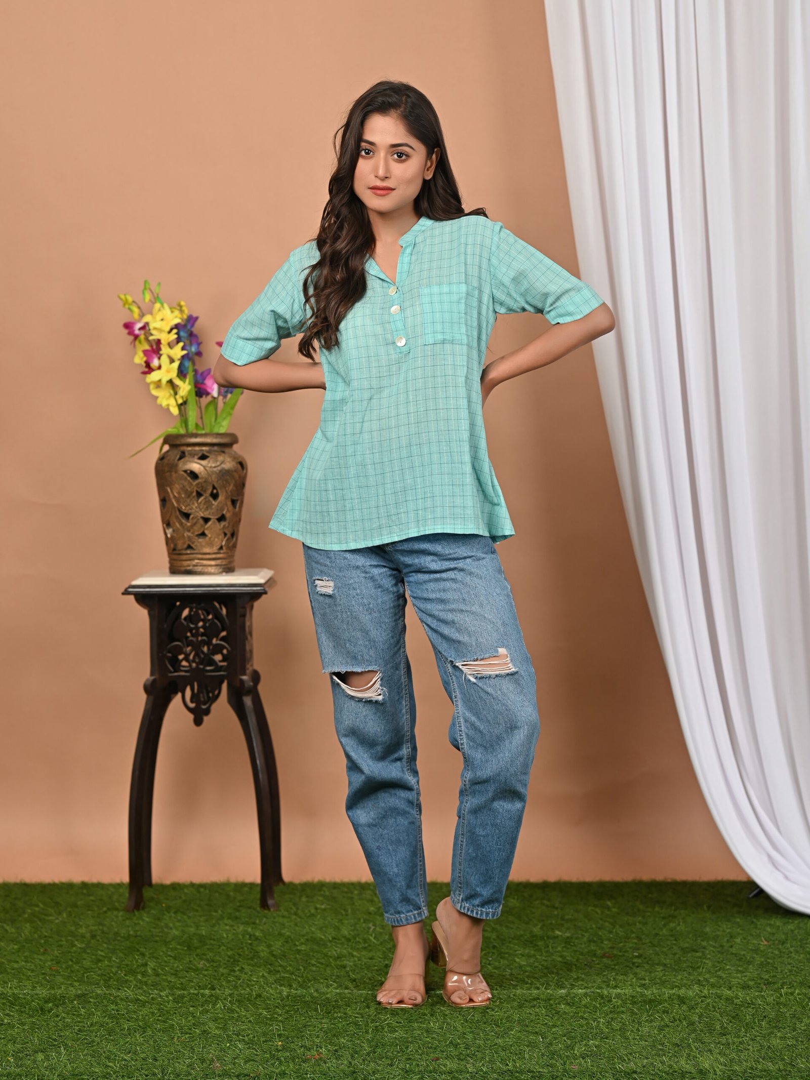 Adrika’s sky blue handloom cotton jamdani top