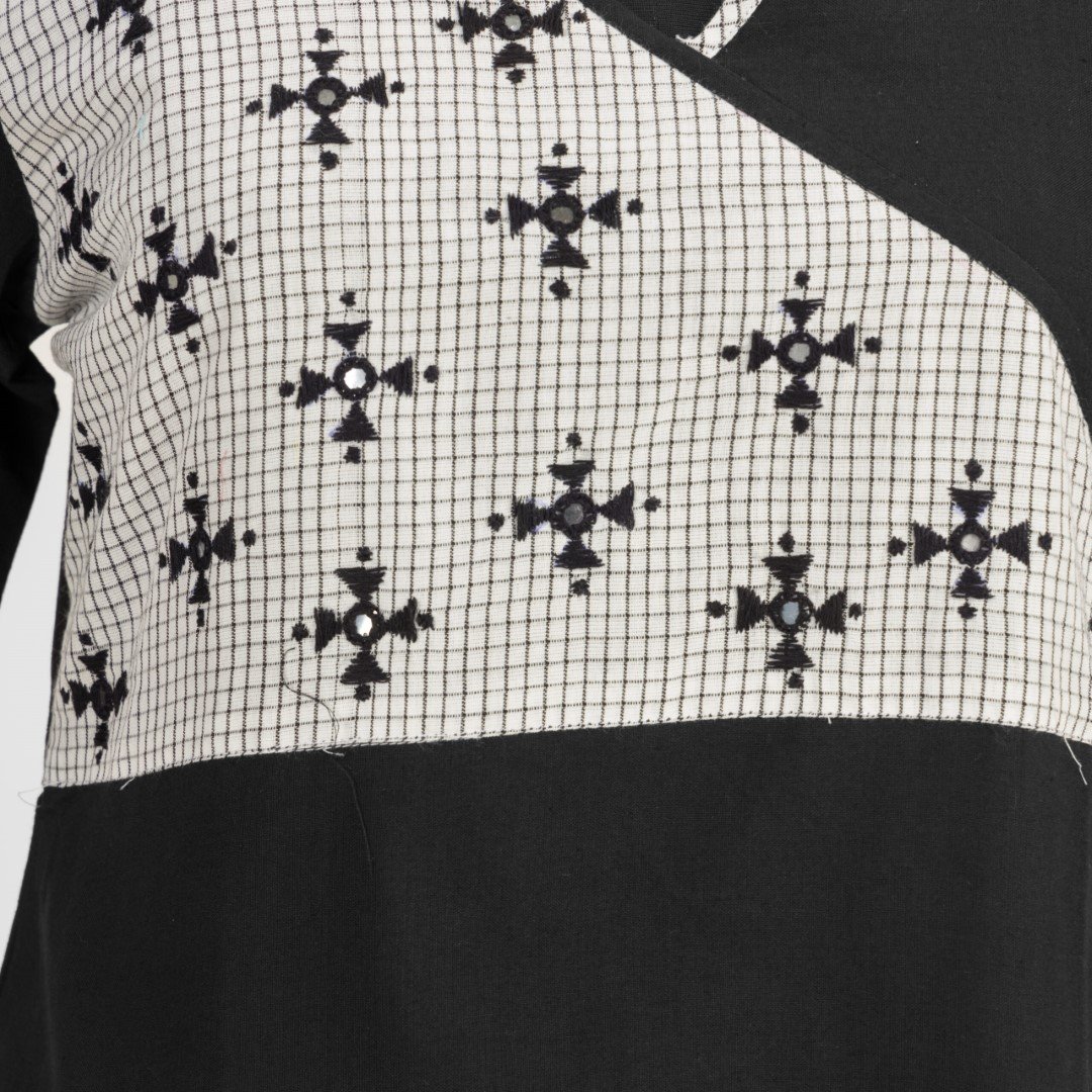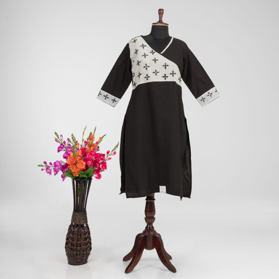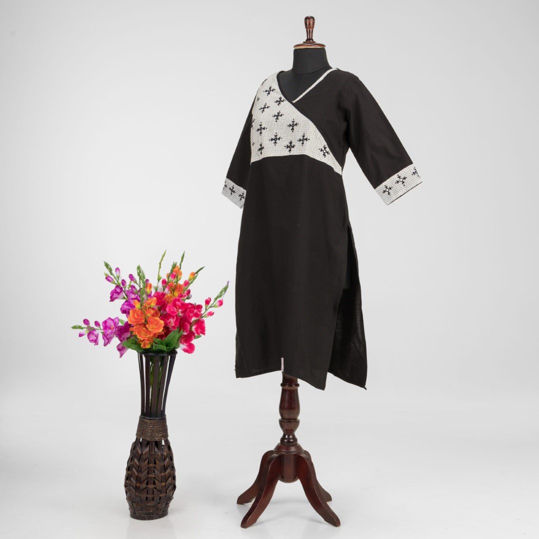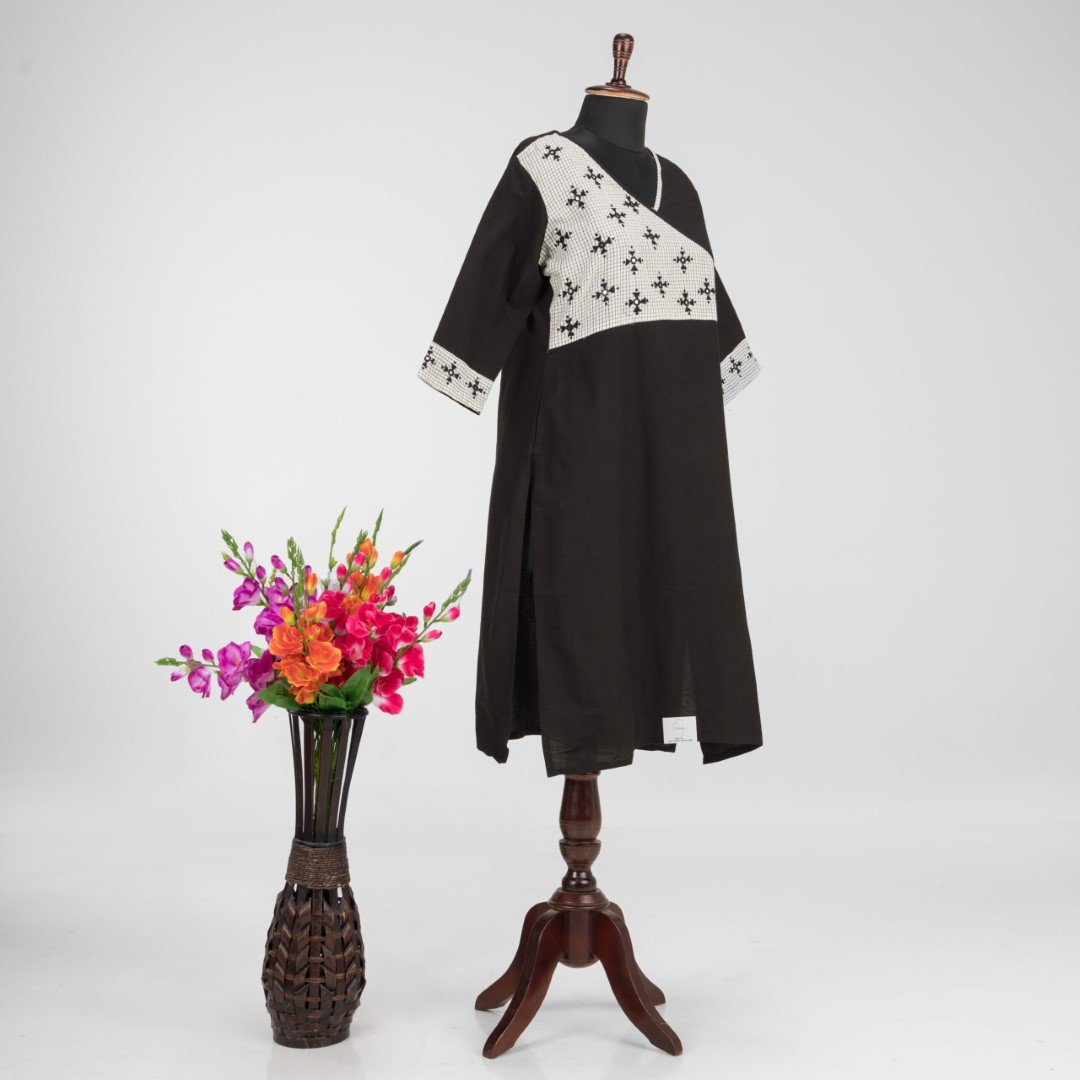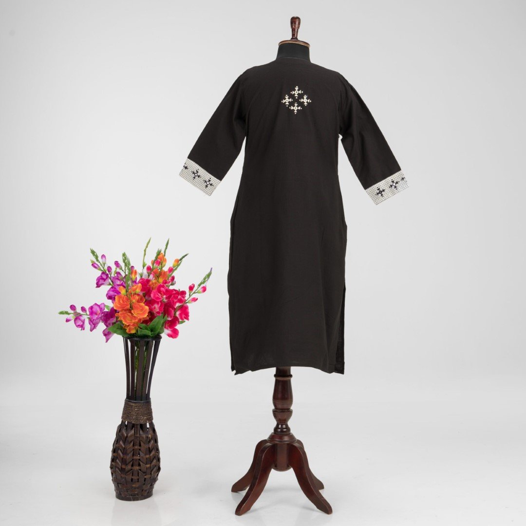 This black pure cotton kurti offers a comfortable & relaxed silhouette to the wearer, the fabric is skin friendly.
