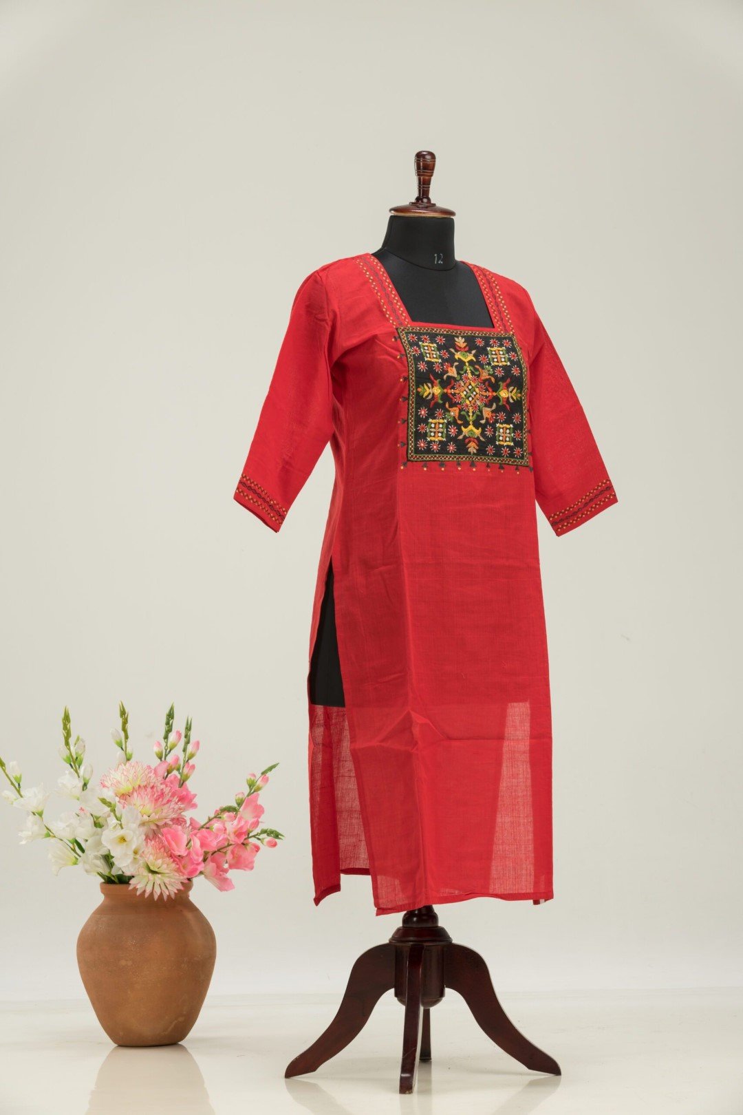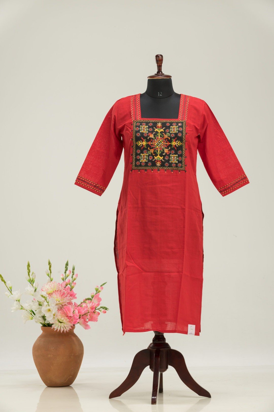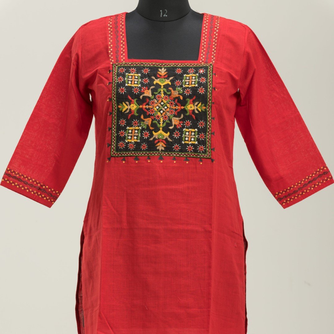 Be the first to review “Adrika’S Brick Red Pure Cotton Hand Embroidered Kurti”