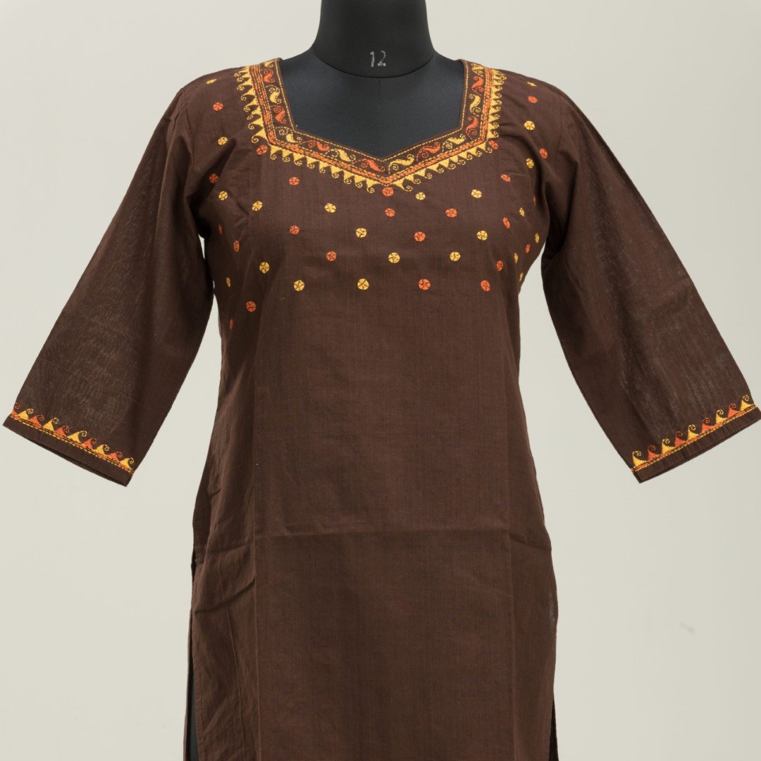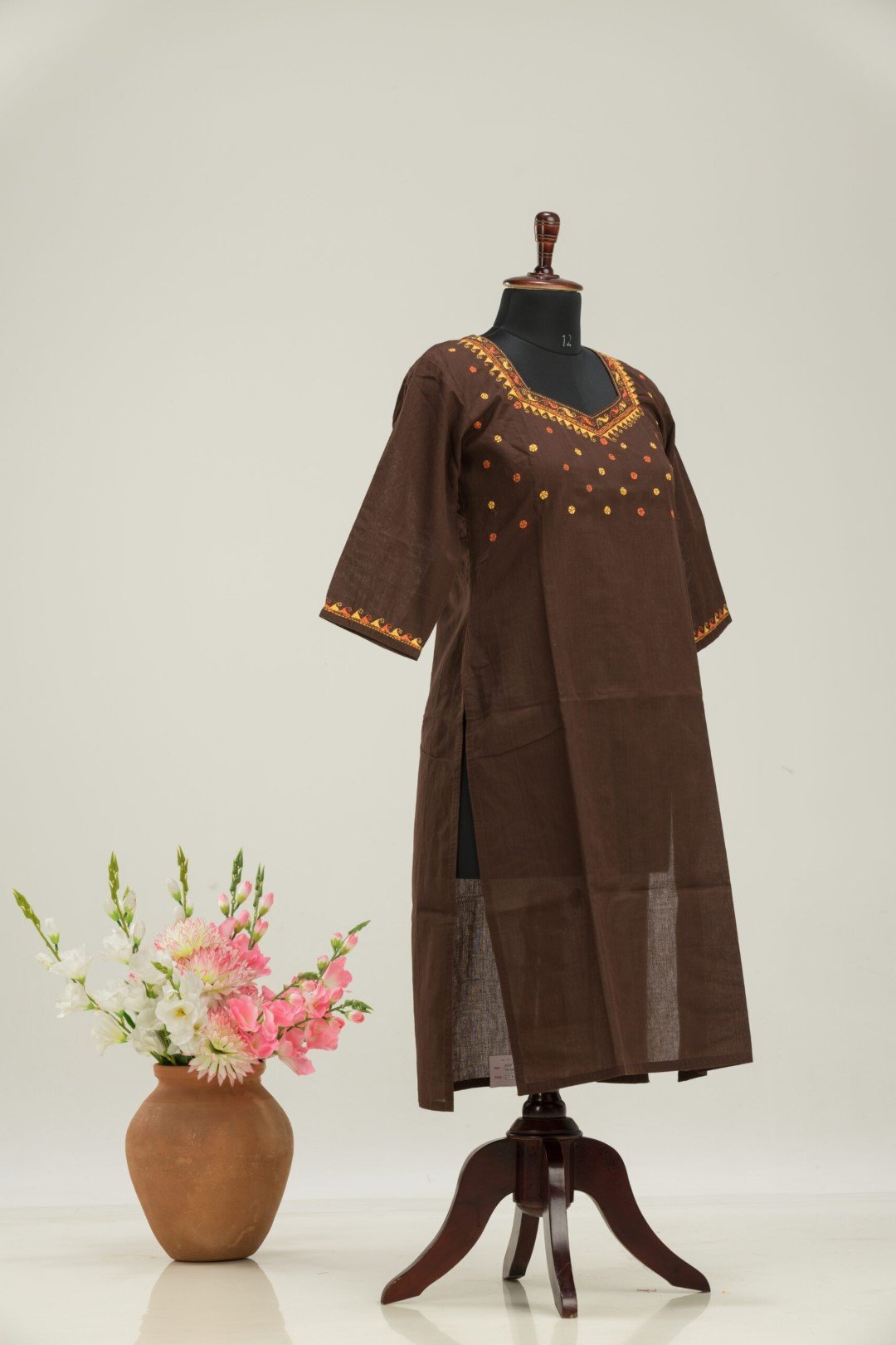Be the first to review “Adrika’S Dark Brown Pure Cotton Hand Embroidered Kurti”