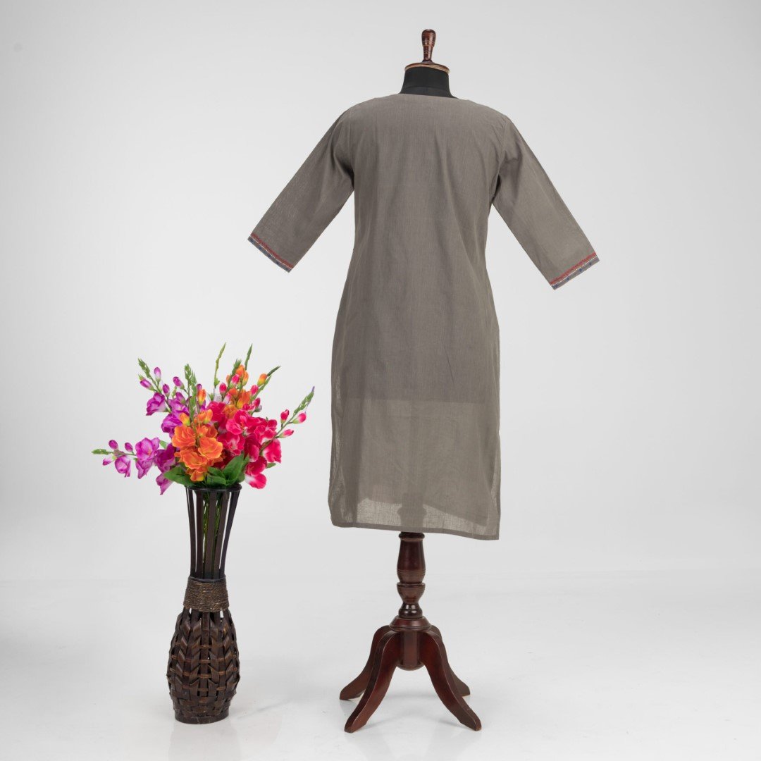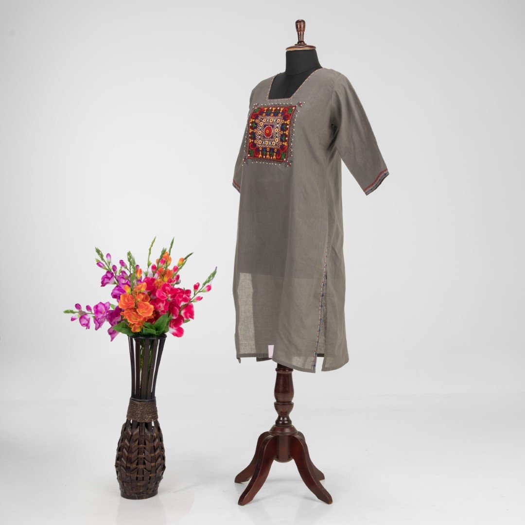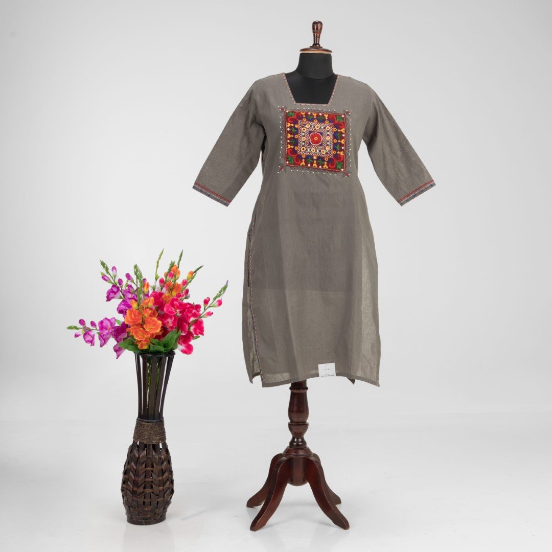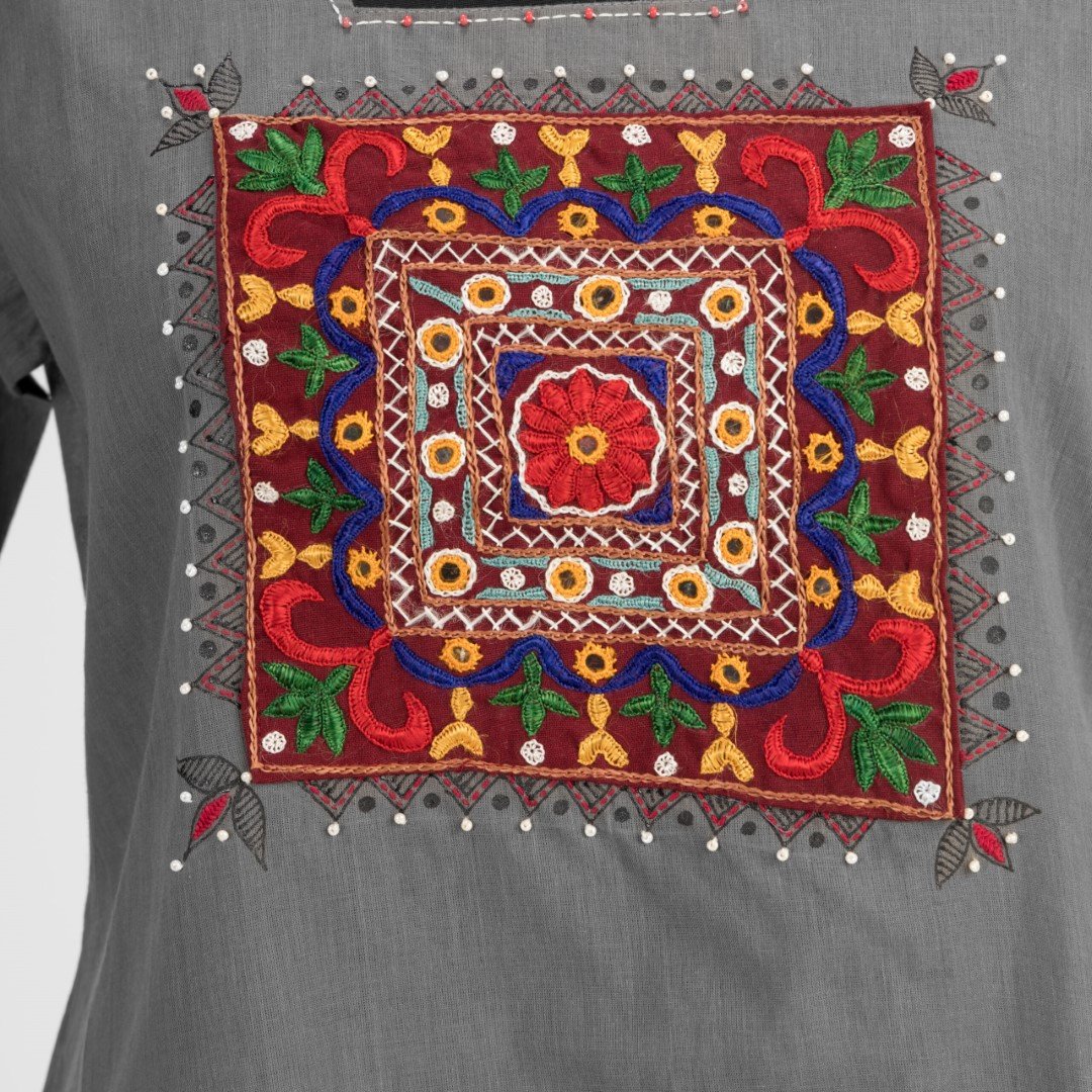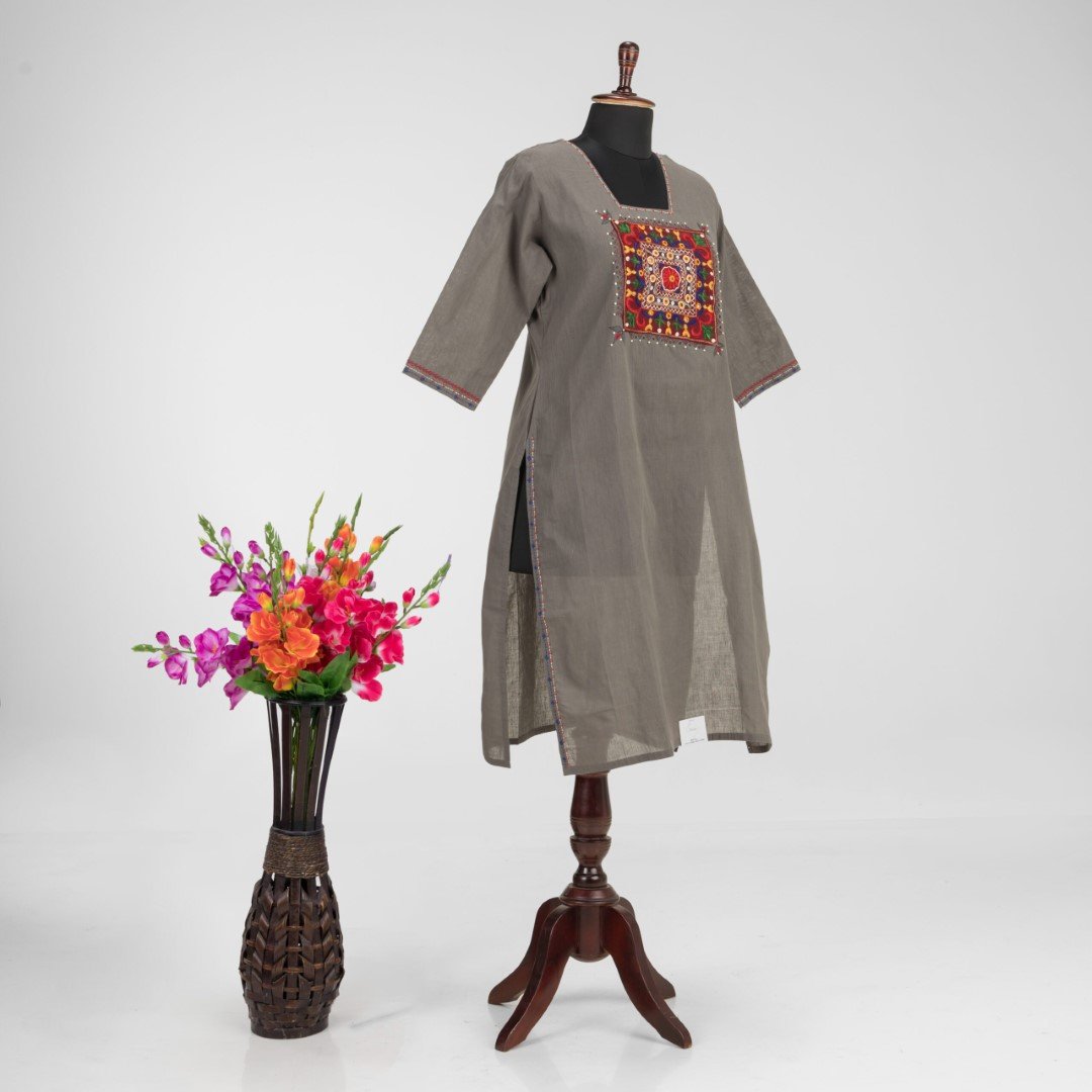 Adrika’s Grey Pure Cotton Hand Embroidered Kurti