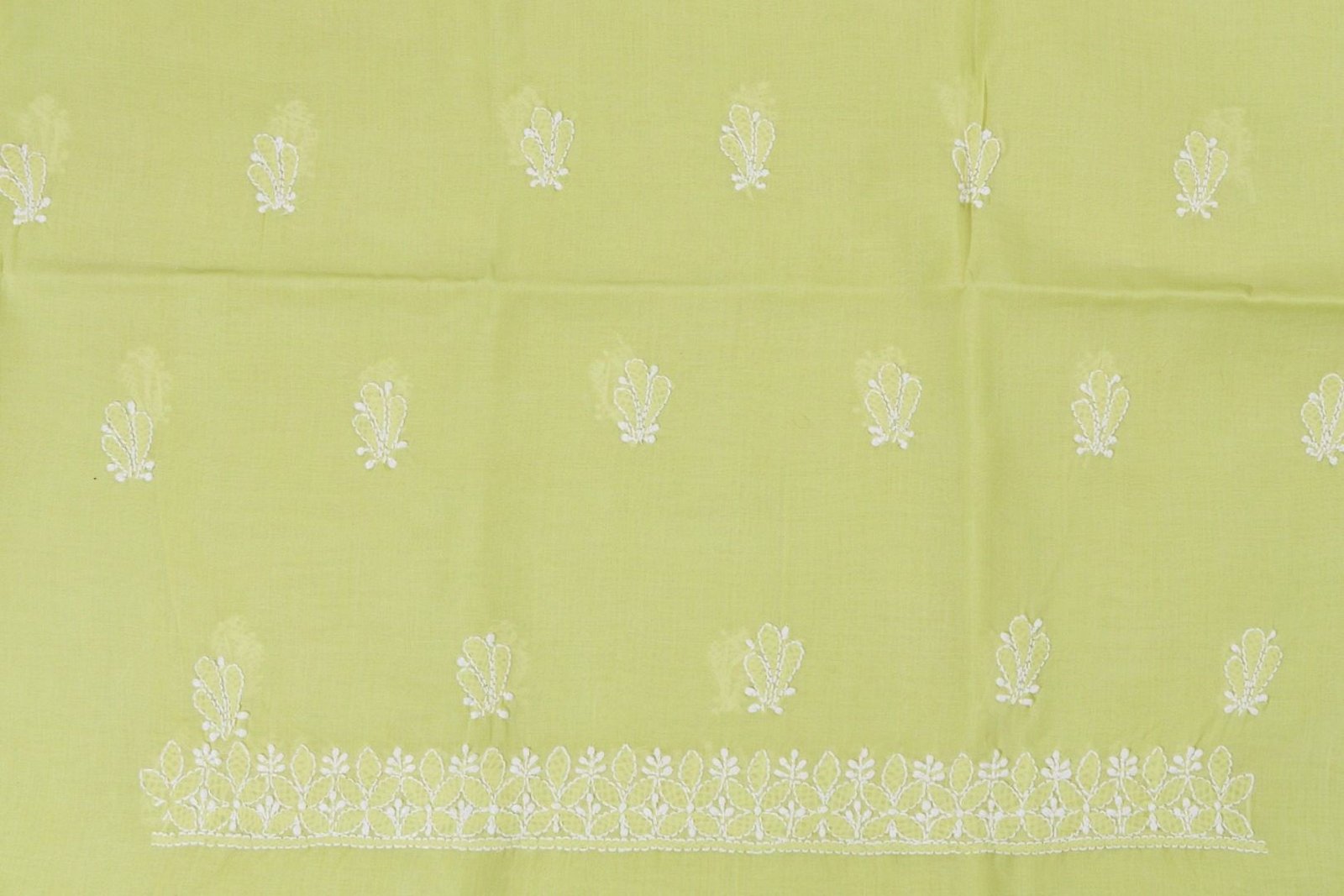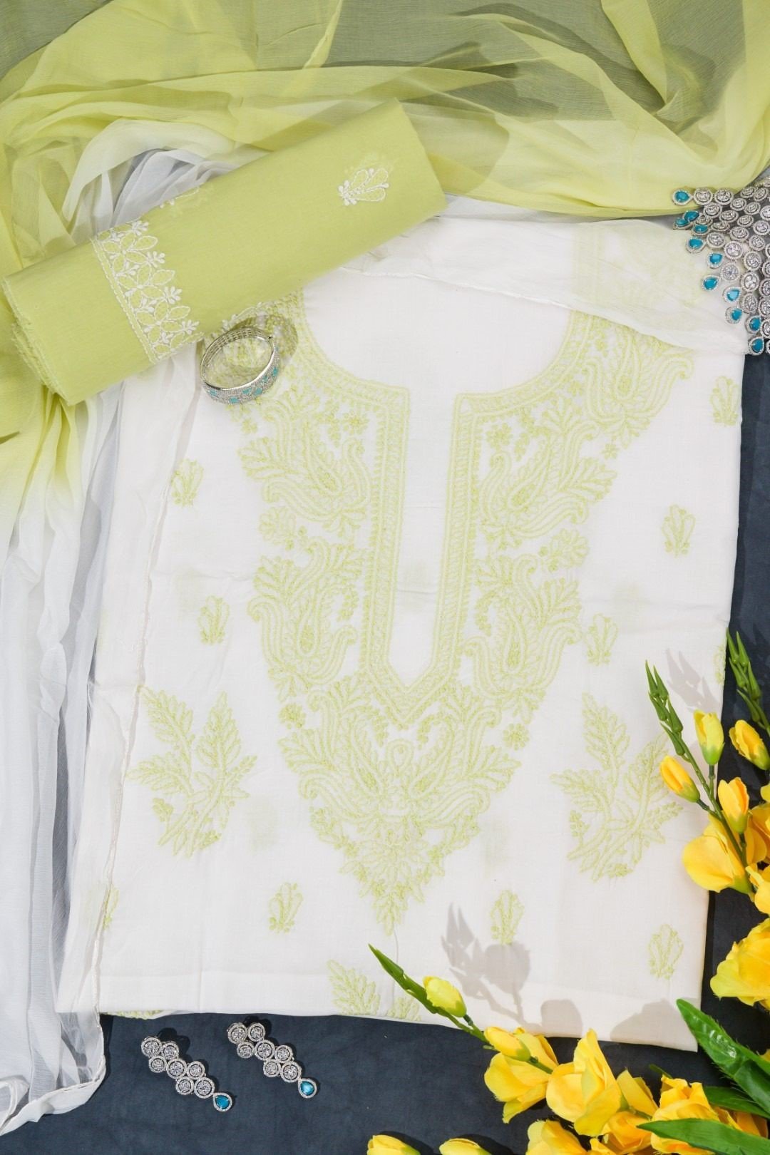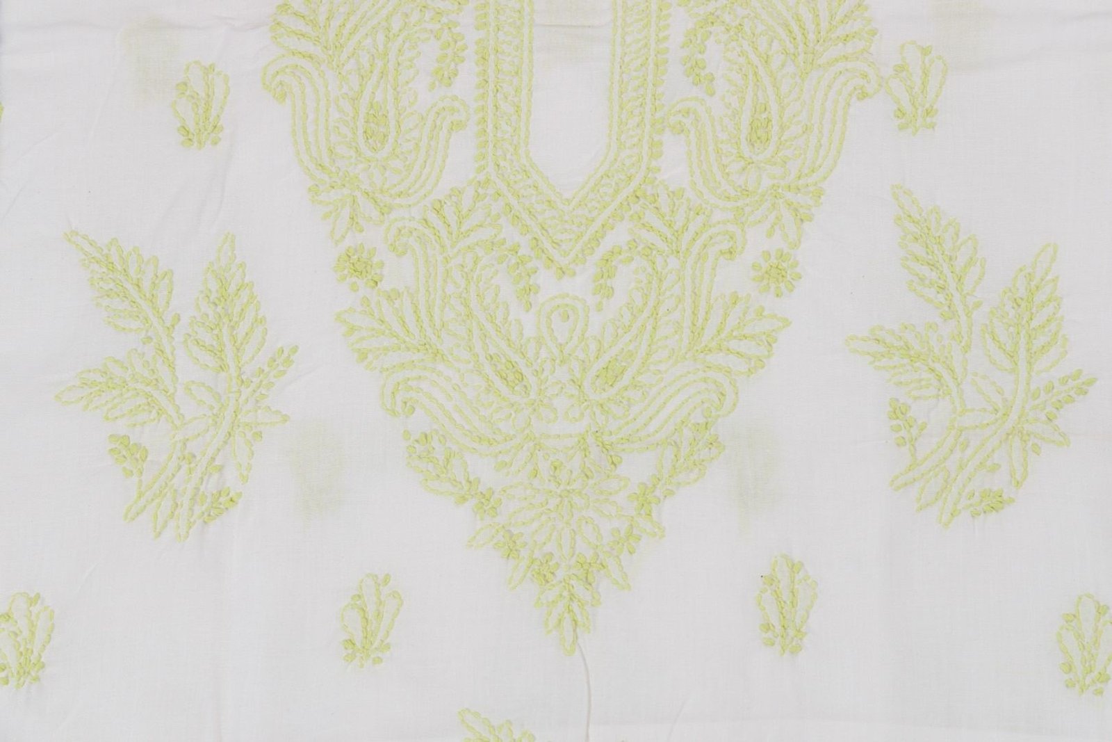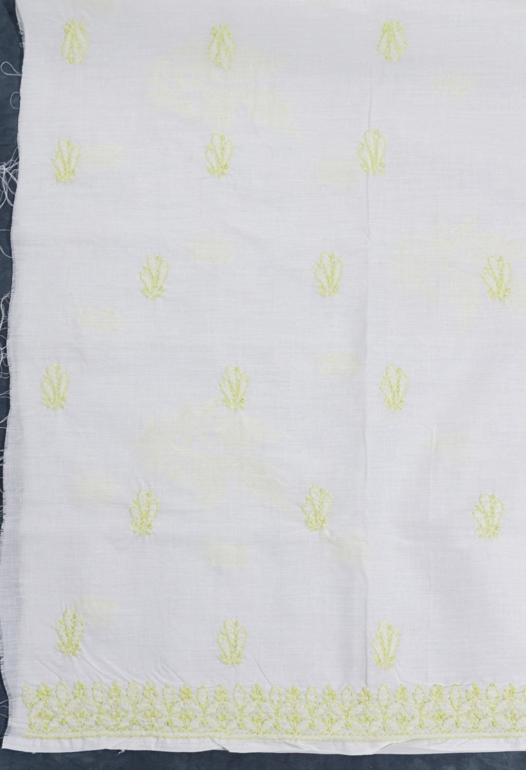 This white cotton Lucknow Chikankari unstitched 3 pc kurti set offers a comfortable & relaxed silhoutte to the wearer,the fabric & embroidery is skin friendly