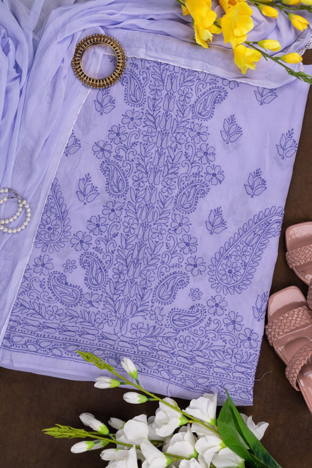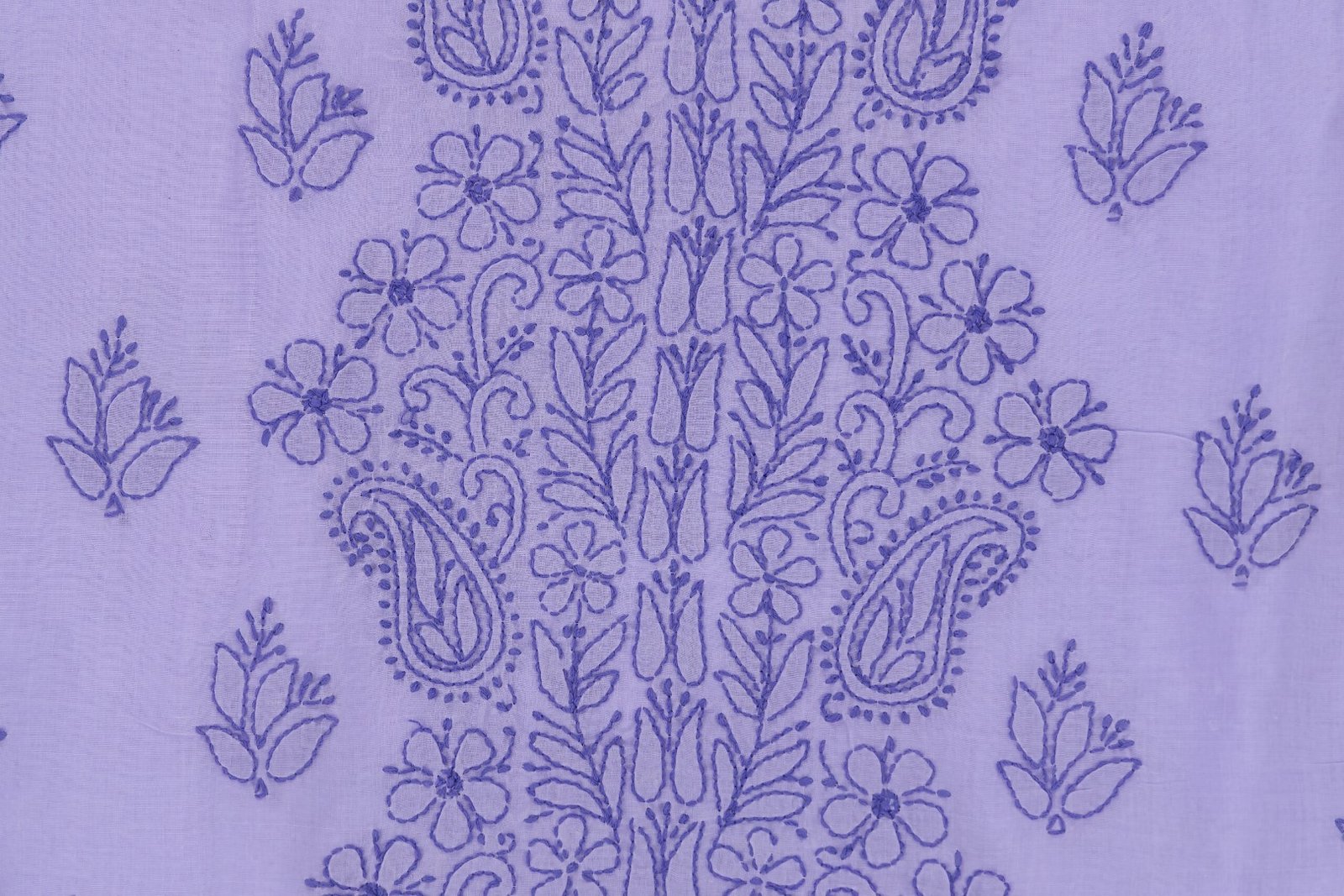 This lavender cotton Lucknow Chikankari unstitched 3 pc kurti set offers a comfortable & relaxed silhoutte to the wearer,the fabric & embroidery is skin friendly