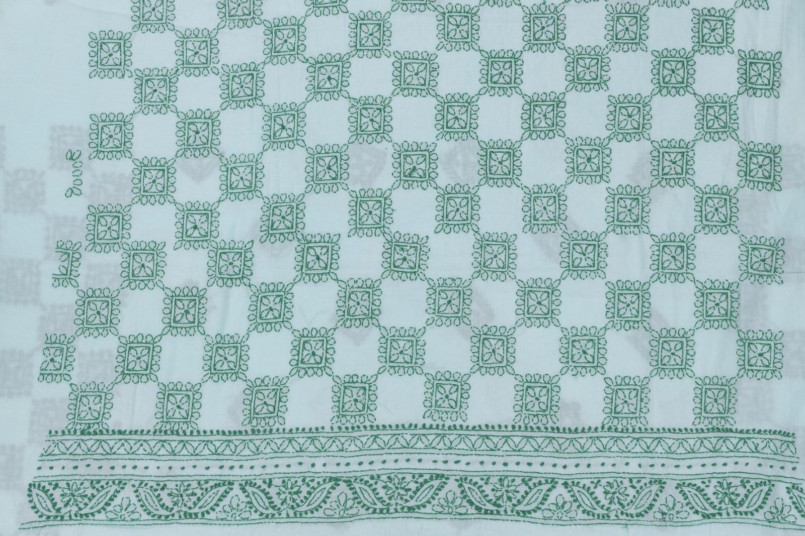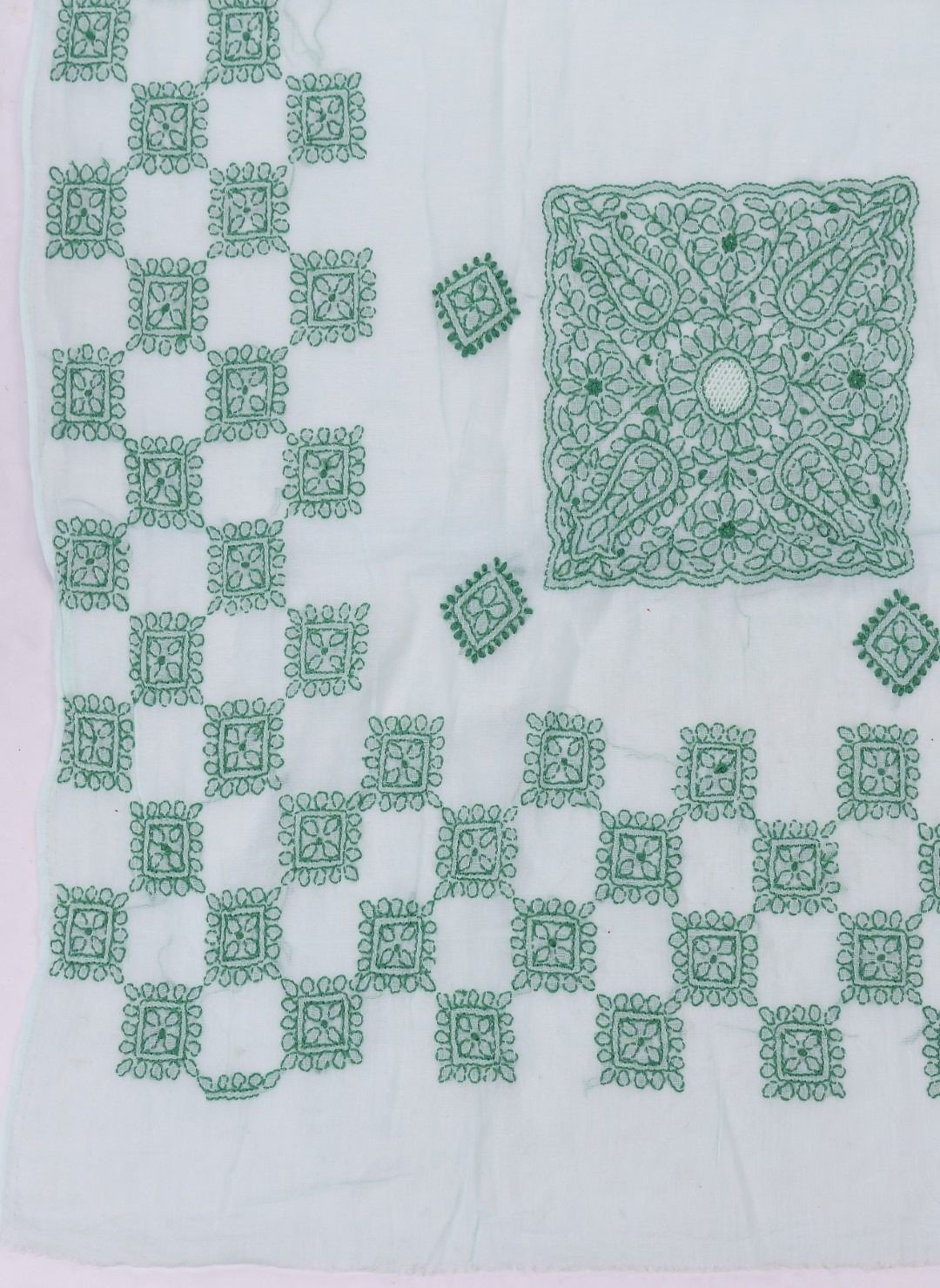 This mint green cotton Lucknow Chikankari unstitched 2 pc kurti set offers a comfortable & relaxed silhoutte to the wearer,the fabric & embroidery is skin friendly