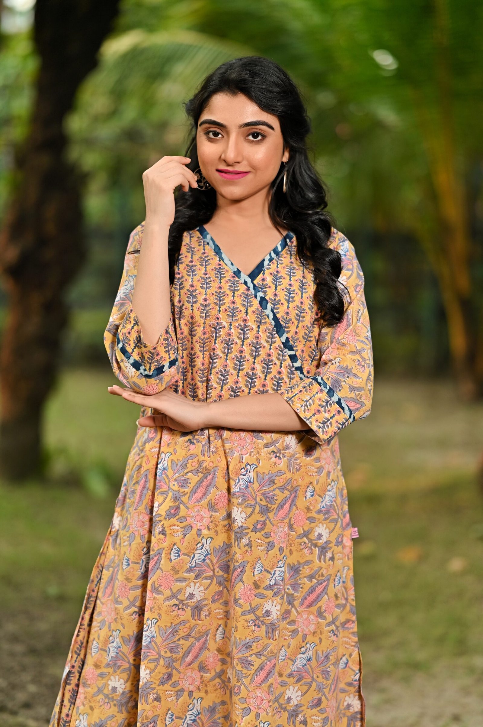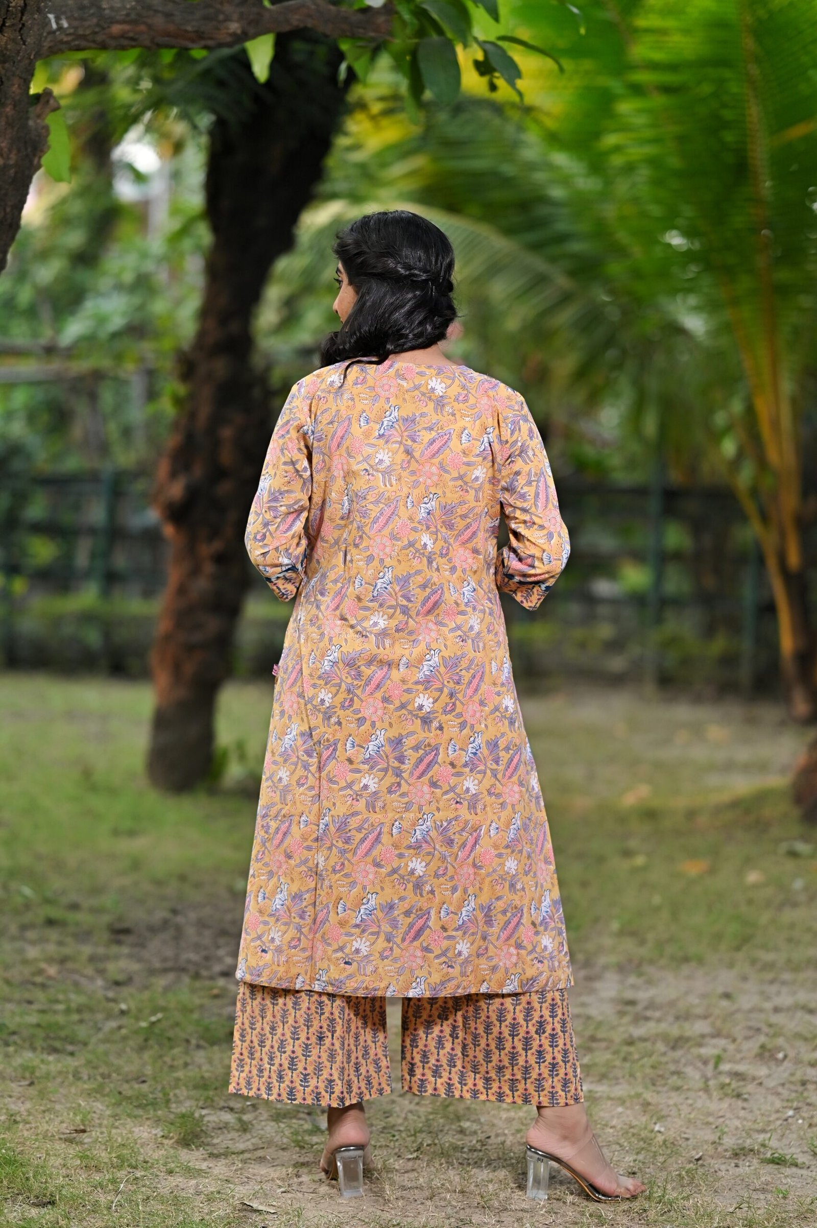 This mustard yellow cotton hand block 2 Pc kurti set offers a comfortable & relaxed silhouette to the wearer, the fabric is skin friendly.