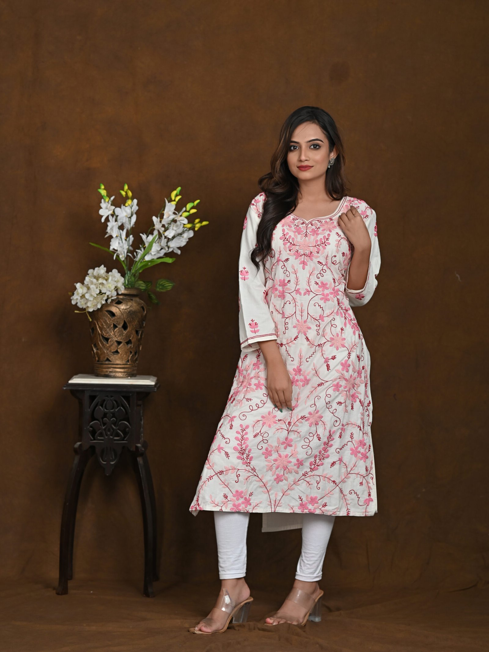 Adrika’s Off White Handloom Cotton With Embroidered Kurti