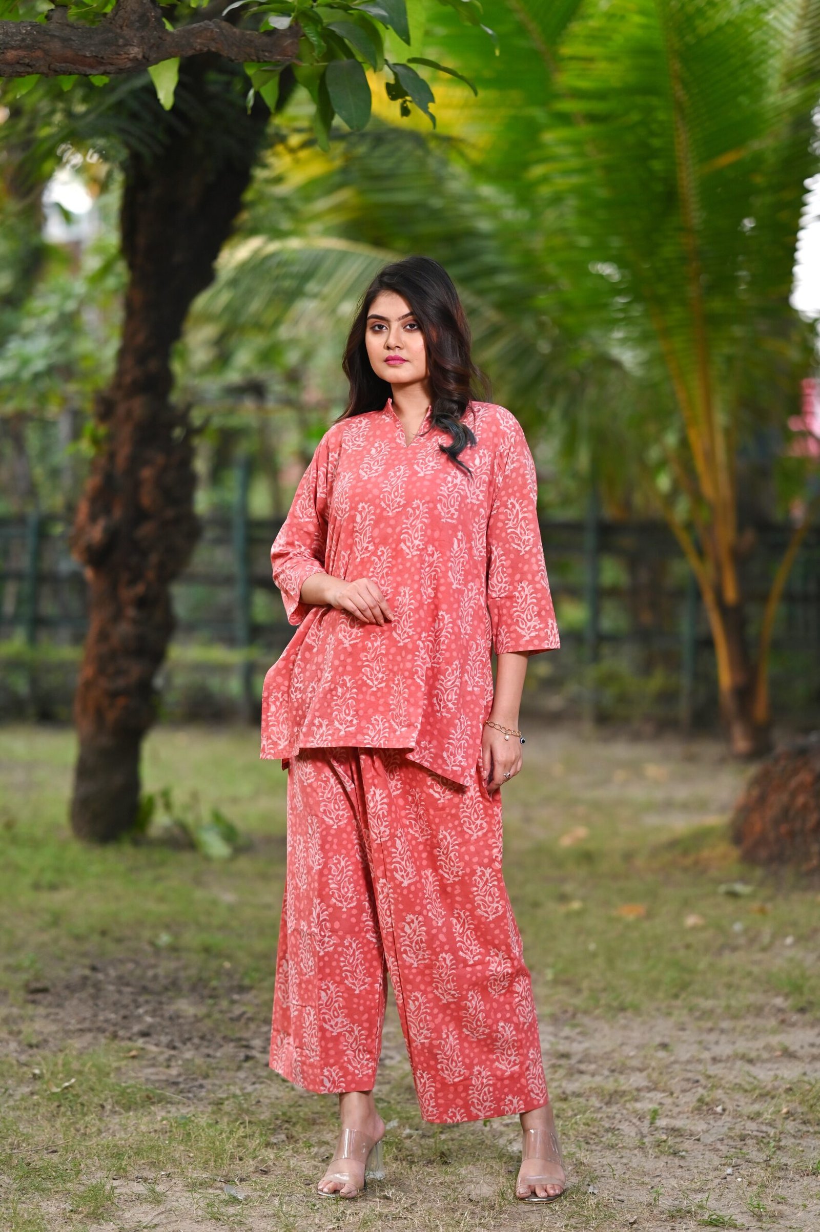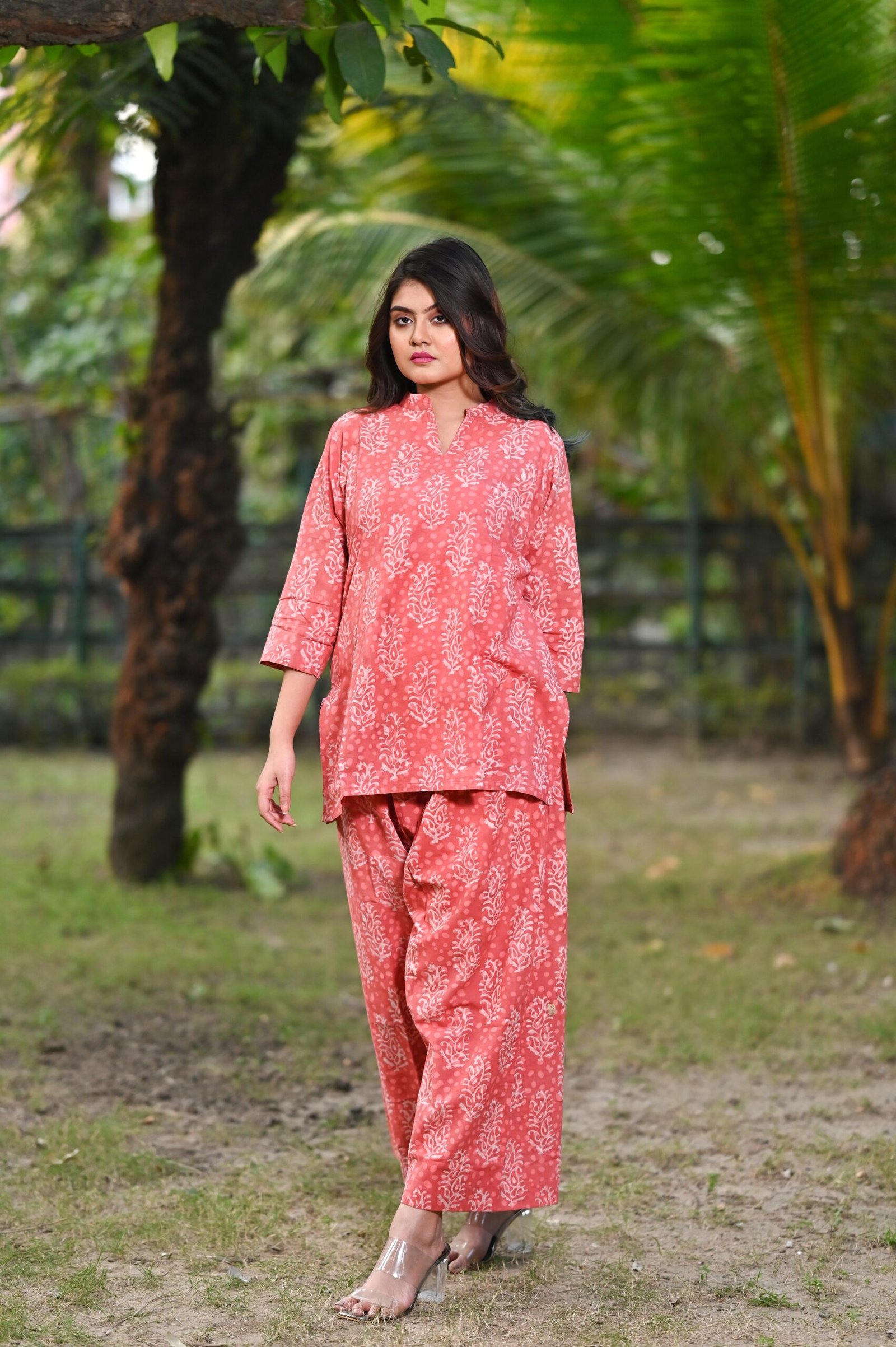 Adrika’s Pure Cotton Dabu Light Brick Red Co-Ord Set