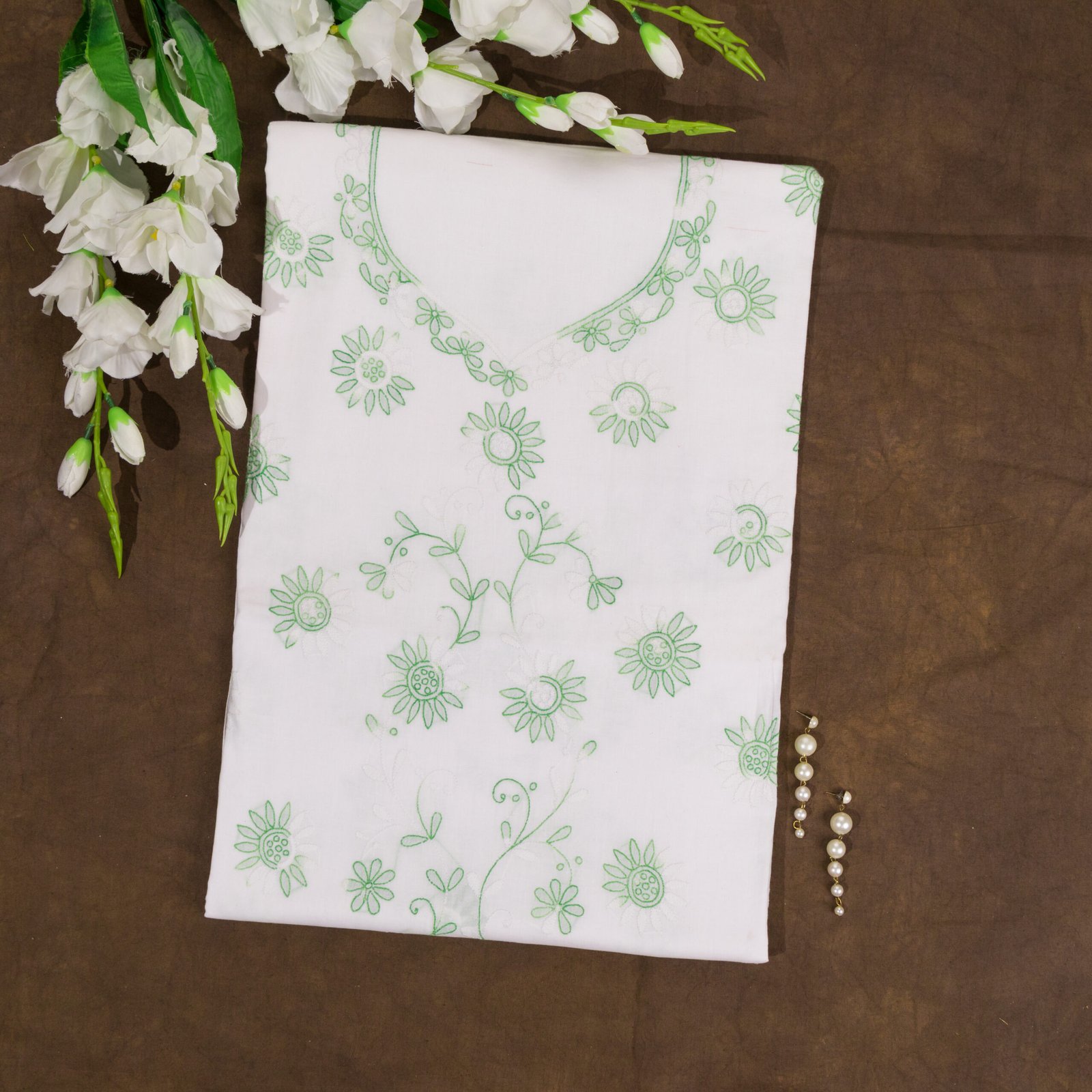 This white color pure cotton hand embroidered with shadow work unstitched kurti offers a comfortable & relaxed silhouette to the wearer, the fabric & embroidery is skin friendly.