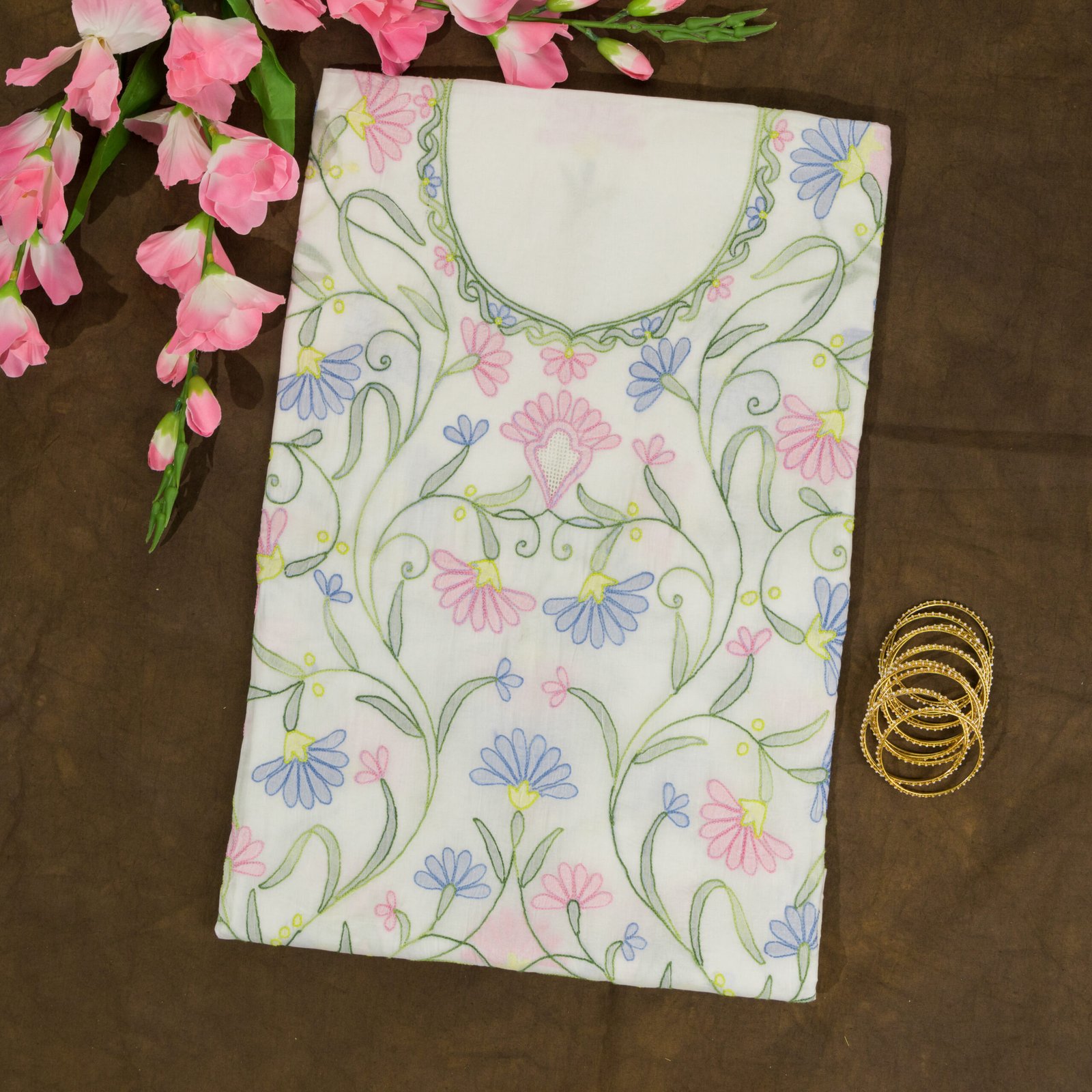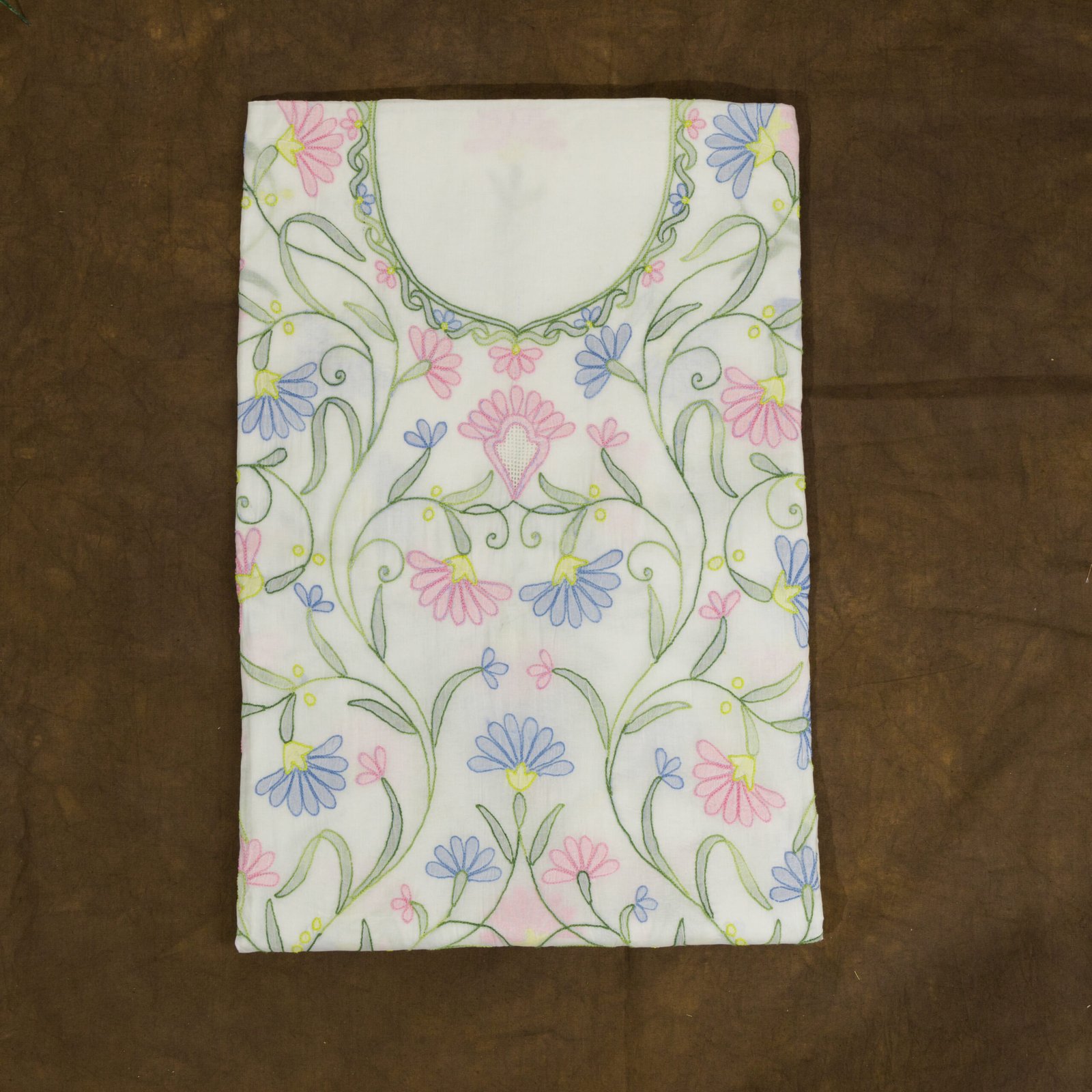 This white color pure cotton hand embroidered with shadow work unstitched kurti offers a comfortable & relaxed silhouette to the wearer, the fabric & embroidery is skin friendly.
