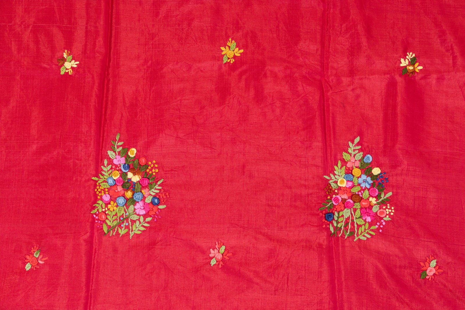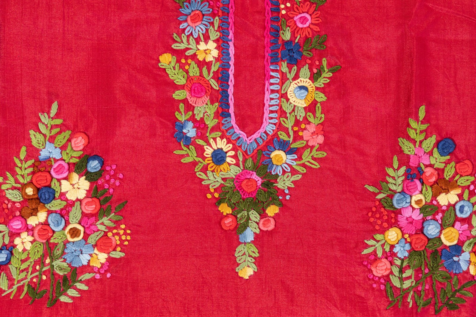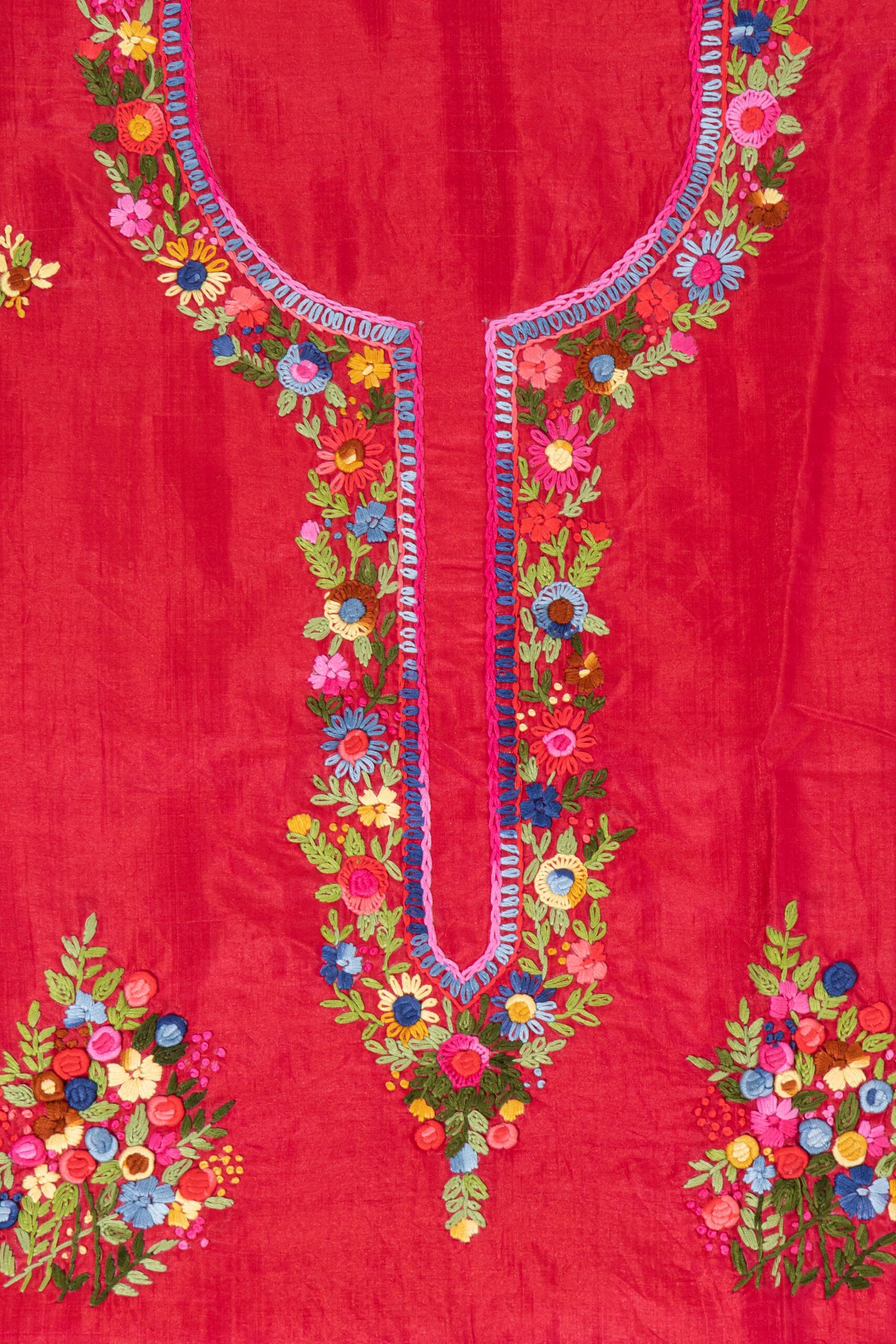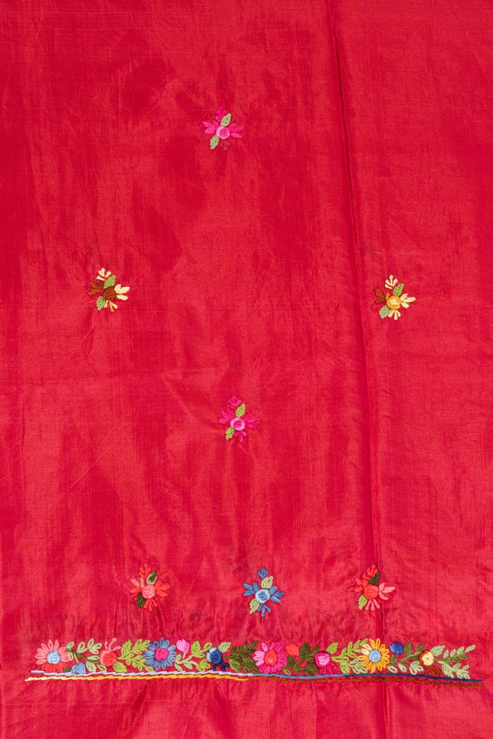 Adrika’S Red Hand Embroidered Bishnupuri Silk Unstitched Kurti