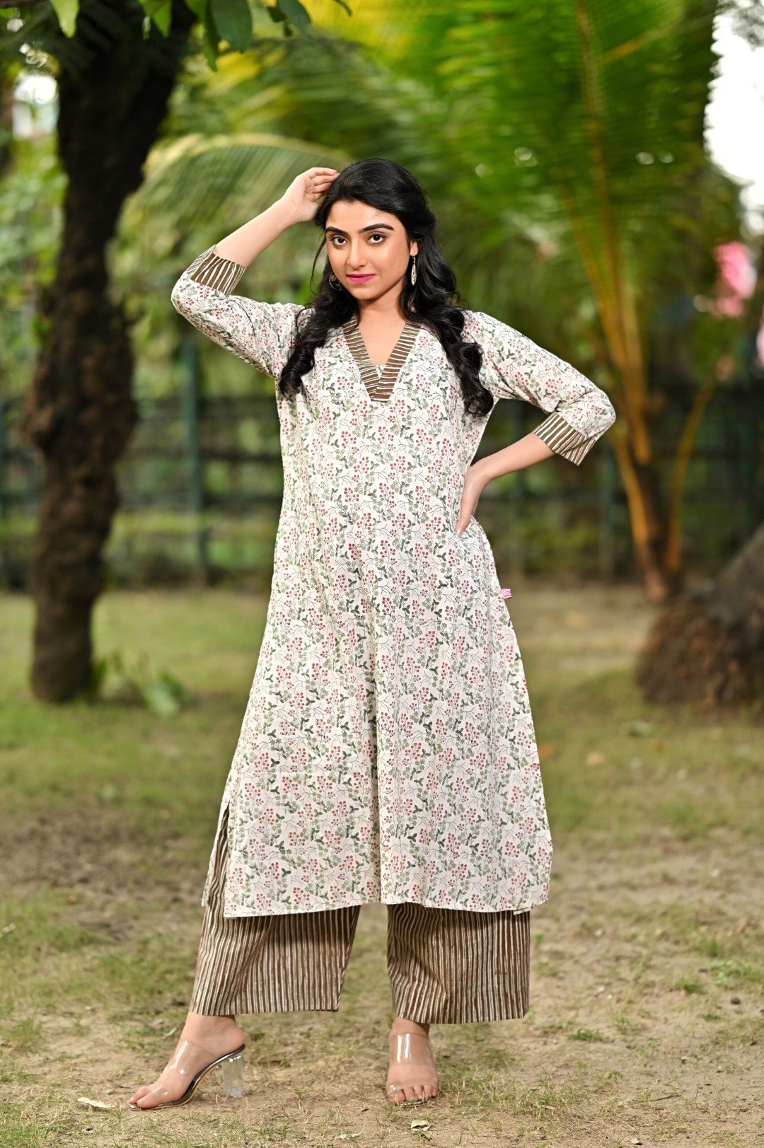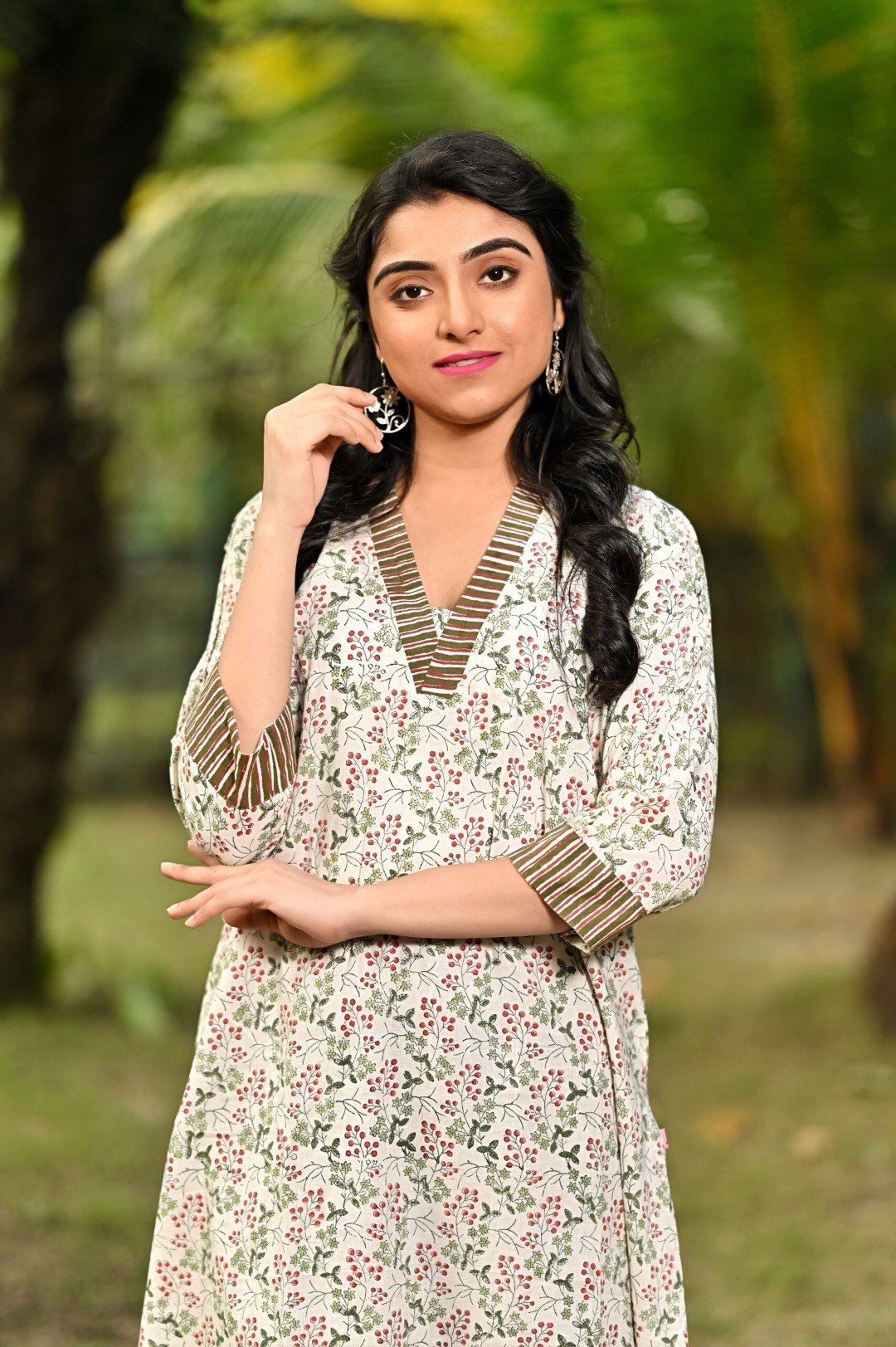Adrika’s Pure Cotton Hand Block Kurti Set