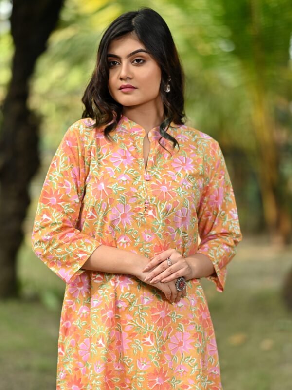 Adrika’s Yellow Pure Hand Block Cotton Kurti